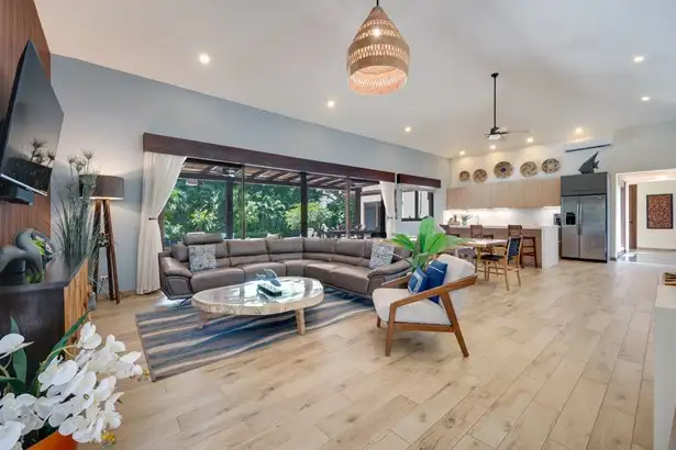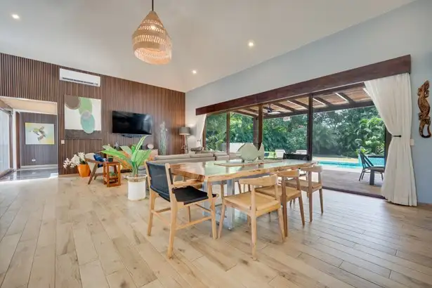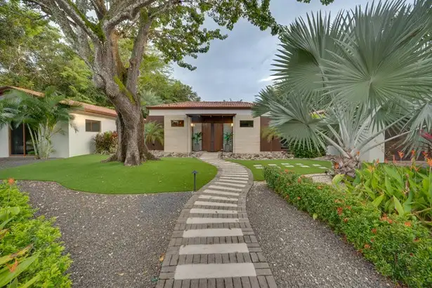 Casa Pachote – Luxury Living in Hacienda PinillaWelcome to Casa Pachote, an exquisite 4-bedroom, 4.5-bath luxury home in the prestigious Reserva de Golf community of Hacienda Pinilla. Recently refreshed with an $80,000 remodel, this residence blends contemporary sophistication with the inviting warmth of tropical living.Step inside and you’ll immediately feel the home’s open, airy ambiance. The living room radiates a welcoming, homey charm, framed by large patio doors that seamlessly connect indoor and outdoor spaces. Whether you’re relaxing with family or entertaining guests, the flow between the indoor living and outdoor dining areas creates an effortless sense of comfort and connection to nature.At the heart of the home is a chef’s kitchen, featuring elegant built-in appliances, a waterfall porcelain island, and matching counters and backsplash. A convenient pass-through window opens to the covered patio - perfect for serving meals al fresco or enjoying morning coffee by the pool.Designed in a distinctive “H” shape, the home’s layout balances privacy and harmony. Each wing hosts a master suite and guest bedroom, connected by a softly lit glass walkway that glows beautifully at night. This architectural touch highlights the home’s modern aesthetic.Every bedroom offers its own en-suite bathroom, ensuring privacy and comfort for family and guests alike. The two grand master suites are true sanctuaries: each with indoor sitting areas, King beds, and patio doors opening directly to the sparkling pool terrace. One master bedroom features an indoor and outdoor shower for a serene, spa-like experience.Step outside to your private tropical oasis. The expansive 11’ x 33’ pool with a tranquil waterfall and color-changing Pentair Glo lights becomes the centerpiece of the backyard as it is surrounded by lush landscaping, mature palms, and vibrant greenery that ensure total privacy. Thoughtfully placed landscape lighting creates a magical atmosphere after sunset, making the evenings just as beautiful as the days.The property is as practical as it is beautiful. Enjoy the convenience of an AstroTurf front lawn, in-ground sprinkler and drip irrigation systems, a whole-house water filtration and softening system, six-zone AC, and automatic blinds. The new outdoor deck space, new décor, and select furnishings complete the remodel, enhancing the home’s refined style.Additional highlights include:Spacious two-car garage with ample storageNew outdoor furniture and pool loungersExtensive exterior lighting on all sidesGolf cart charging outletFive TVs includedFully furnished and move-in ready, with all kitchenware includedFreshly painted exteriorAccess to all the amenities of Hacienda Pinilla including: golf, tennis, world-class surfing, beach club, miles of biking and hiking trails, restaurants, gym, etc Casa Pachote, Reserva de Golf 75 isn’t just a home—it’s a lifestyle. Offering a rare combination of luxury, comfort, and tranquility, it’s perfect as a full-time residence or high-end vacation retreat.? Experience the beauty of Hacienda Pinilla living, where every detail invites you to slow down, breathe, and feel at home.Contact us today to schedule your private showing.