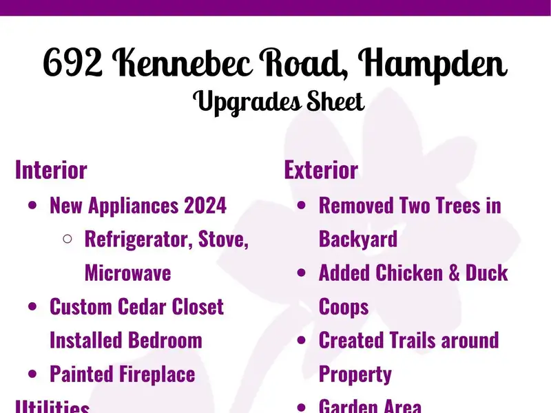 692 Kennebec Road, Hampden, Maine, 04444, USA offers the following features: