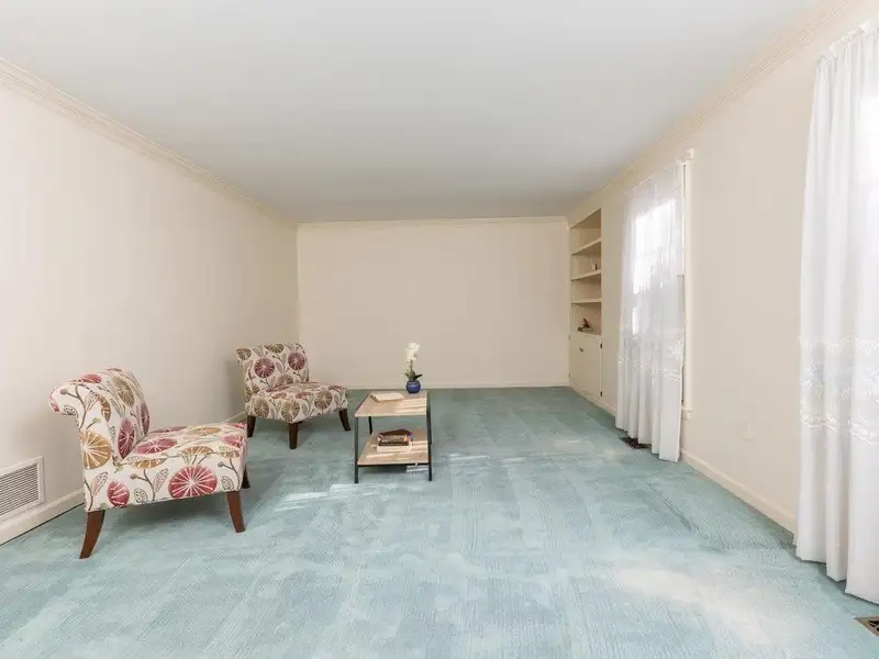 - Formal living room with built-in bookshelves
