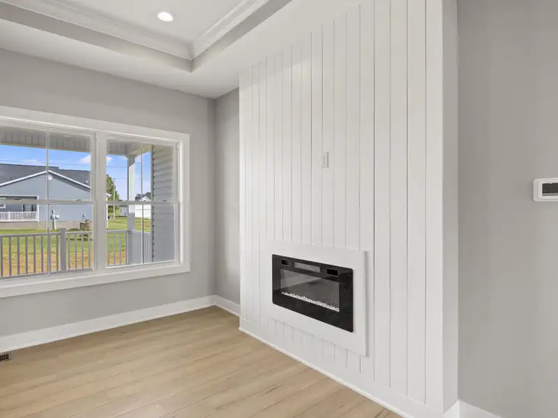 - Cozy family room with electric fireplace