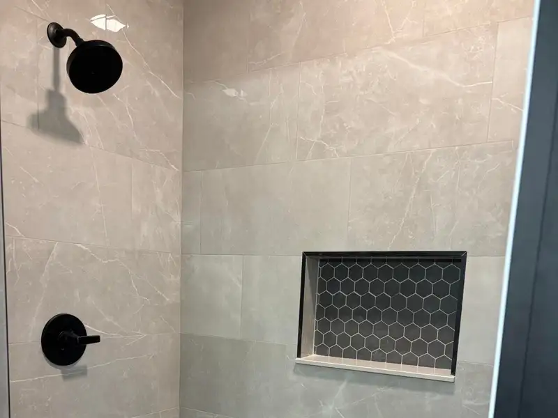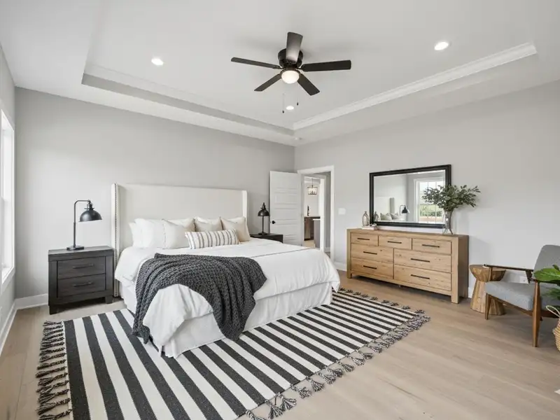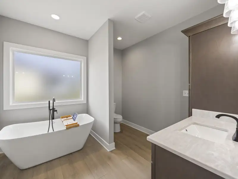 - Primary suite with soaking tub and tiled shower