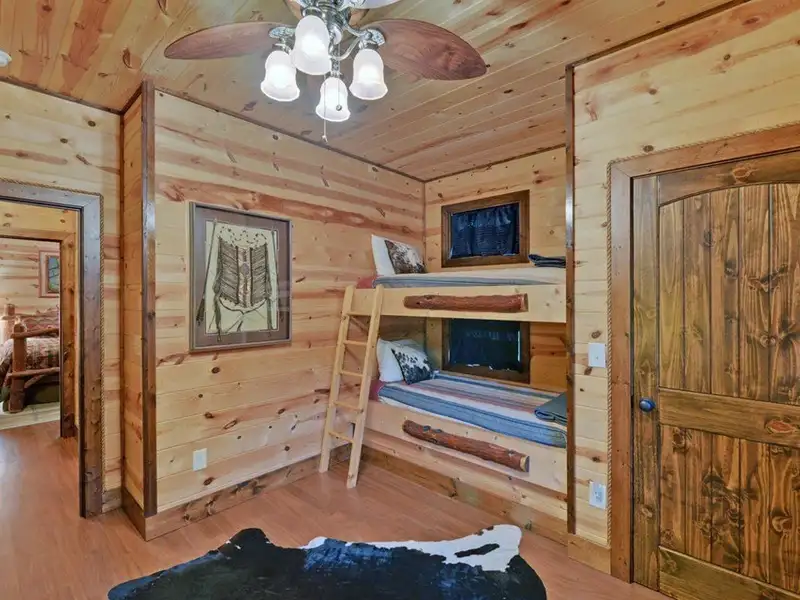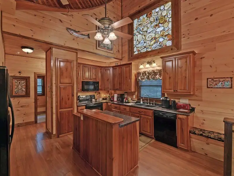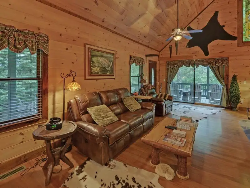 - Soaring cathedral ceilings with wood interior