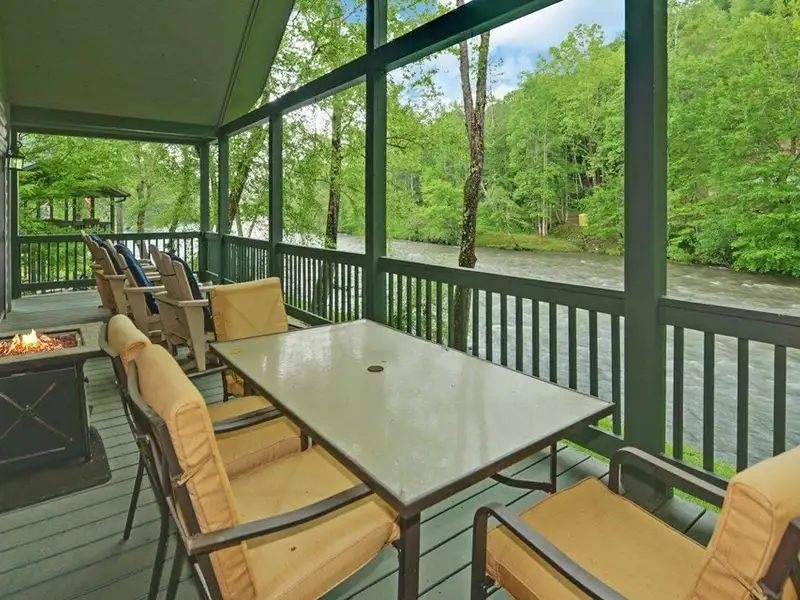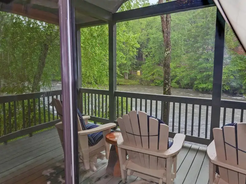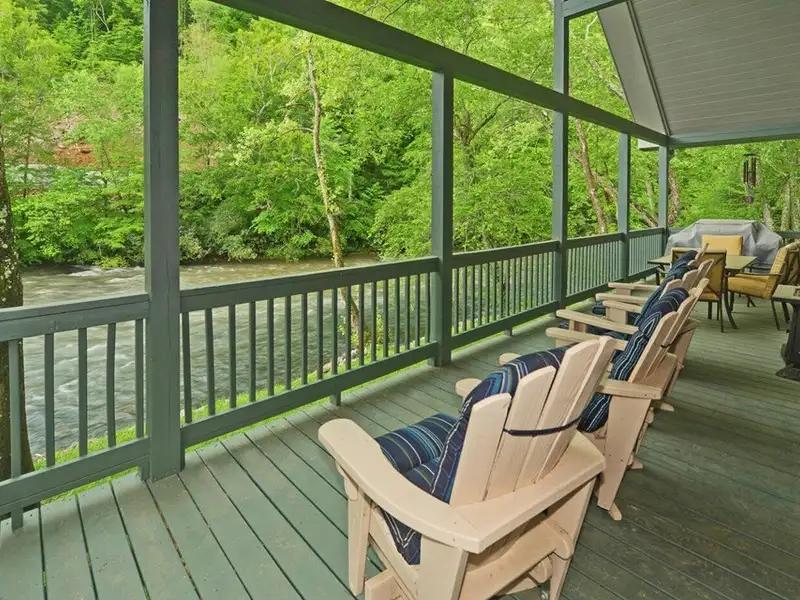 - Enclosed porch overlooking the river