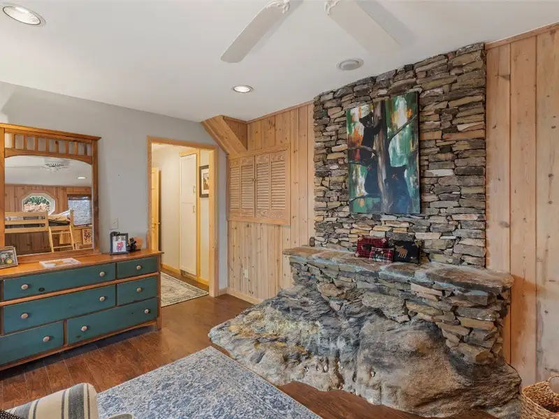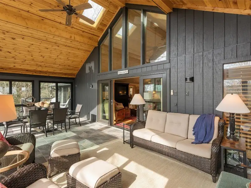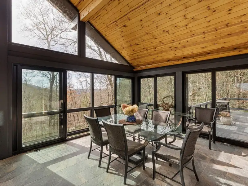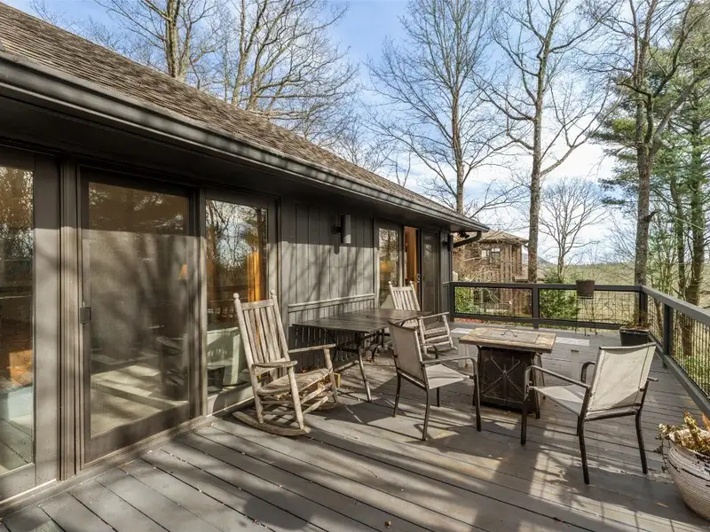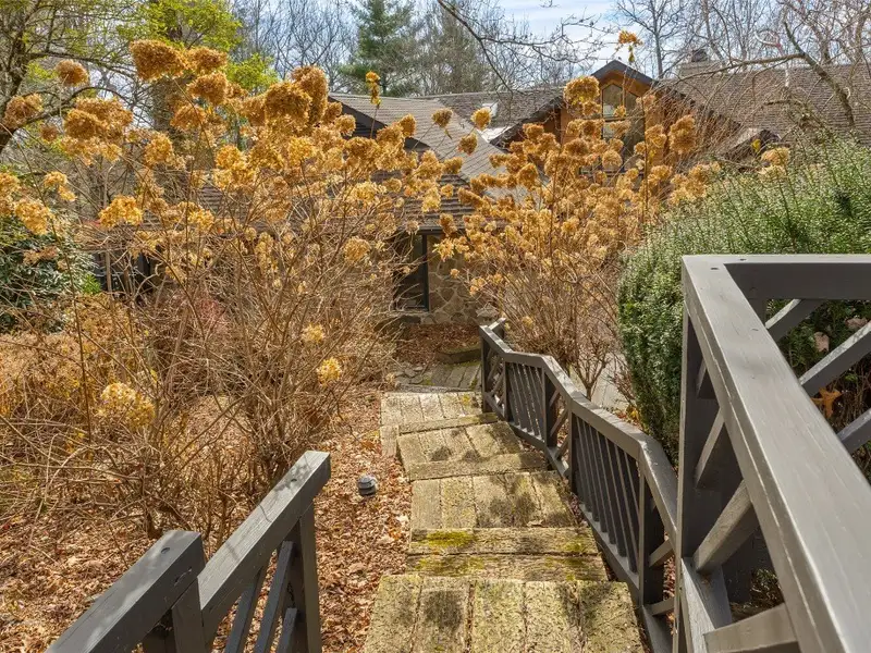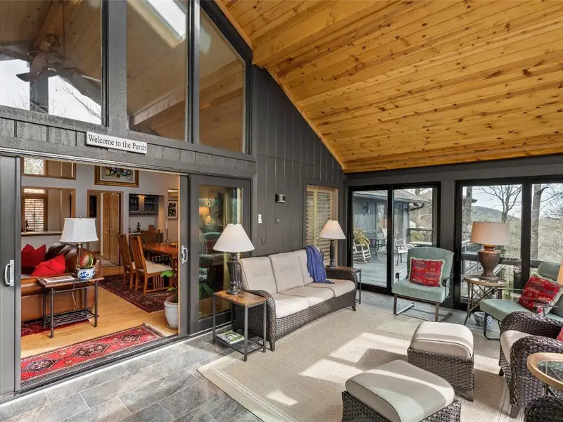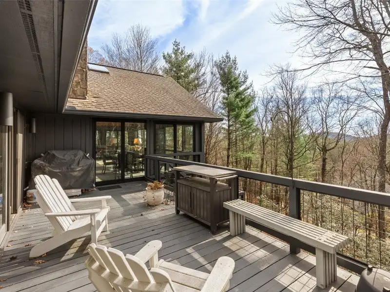Perched above Highlands' famed 4,118 feet-this elegant mountain residence enjoys refreshing temperatures and gentle breezes year-round. A stately gated entry welcomes you to this beautifully updated Craftsman-style home, with a brand-new roof currently being installed. The thoughtfully designed floor plan offers effortless main-level living with an inviting open-concept great room and three spacious bedrooms, each with tastefully updated baths. The impressive primary suite is a true retreat, featuring private deck access, a generous spa-inspired bath with a steam shower and heated floors, a large closet, and remote-controlled drapery for added comfort and convenience. The kitchen has been stylishly updated and enhanced with a new walk-in pantry, cabinetry, floor and appliances. A handsome stone fireplace anchors the living and dining areas, which flow seamlessly onto a remarkable all-weather porch. Ingeniously designed glass doors allow the space to transform from enclosed to screened in moments-perfect for taking in the southern exposure, western-facing sunsets and winter mountain views. The lower level offers additional space for entertaining or relaxing, including a family room with a wet bar, an office, a guest bedroom, a game room, two full bathrooms and access to both a screened porch and deck. Additional highlights include a two-car garage with workshop area, side courtyard for gardening, ample driveway parking with an added street-level parking pad, and a generator for peace of mind during inclement weather. Privately situated within the gated, scenic community of Highlands Falls Country Club-just minutes from downtown Highlands-this home offers the ideal blend of privacy, convenience, and refined mountain living. Club membership is optional but provides access to wonderful amenities for those seeking an exceptional Highlands lifestyle.