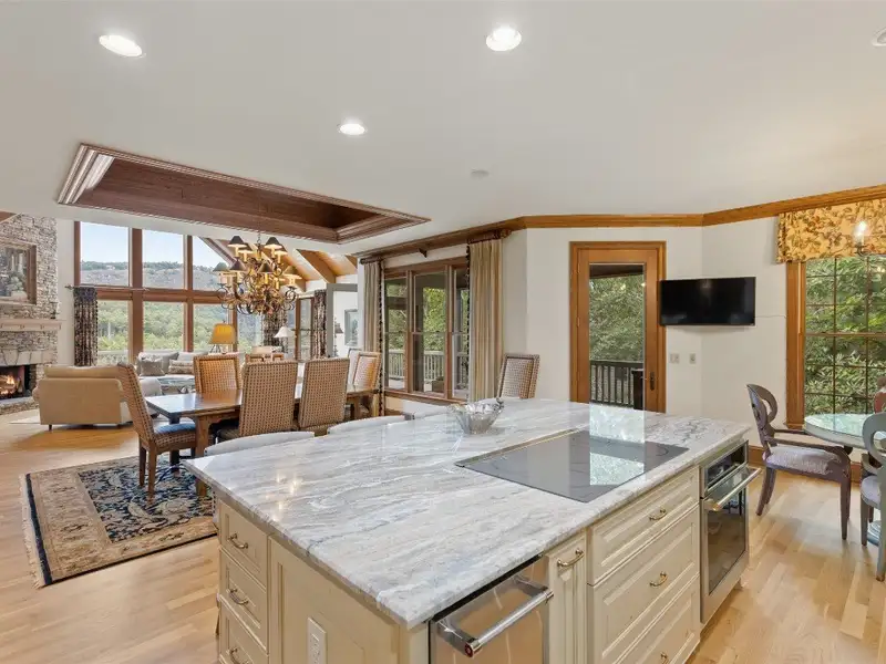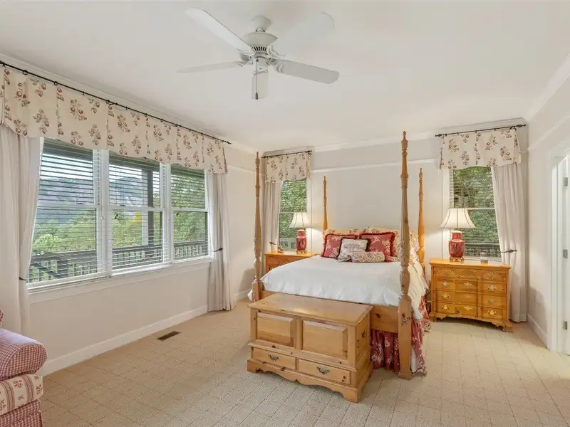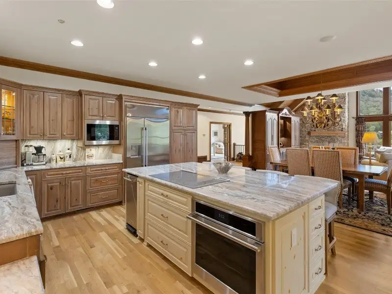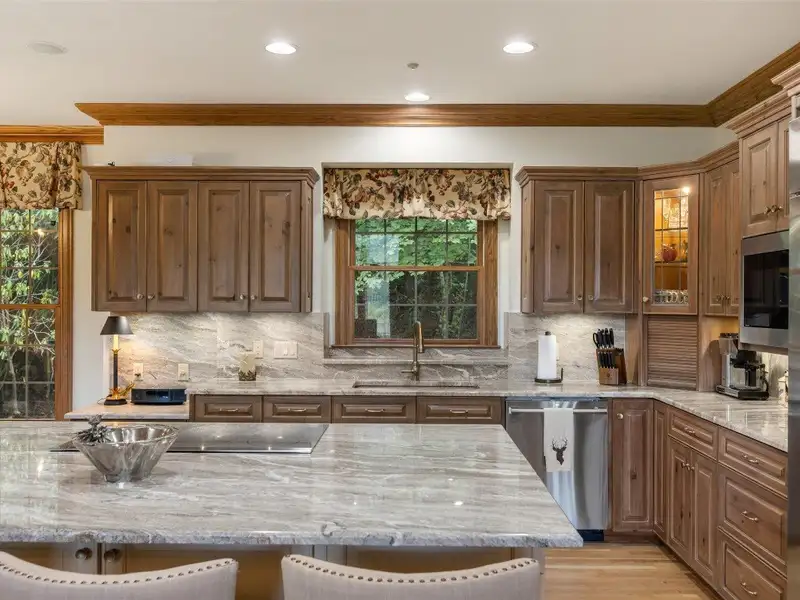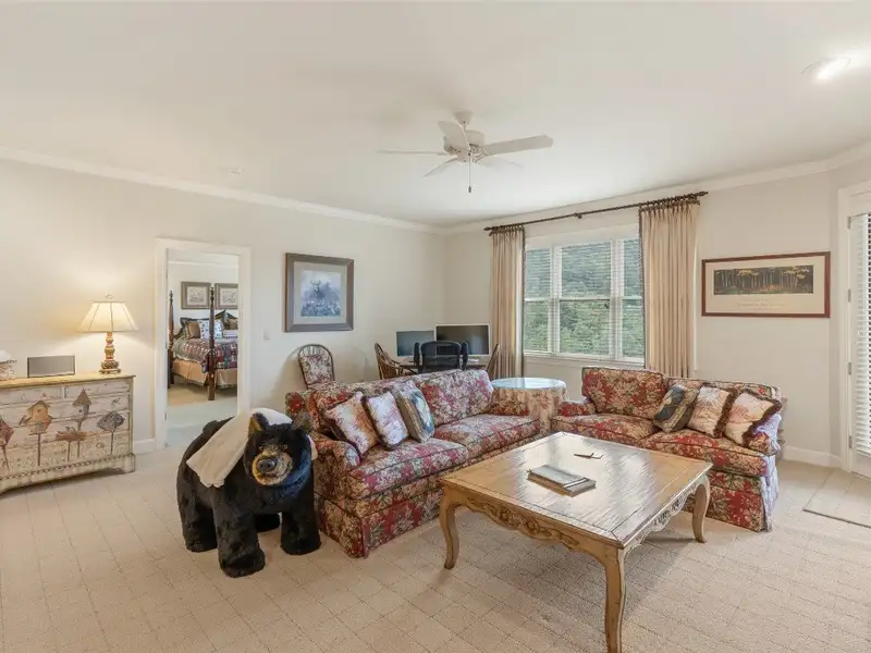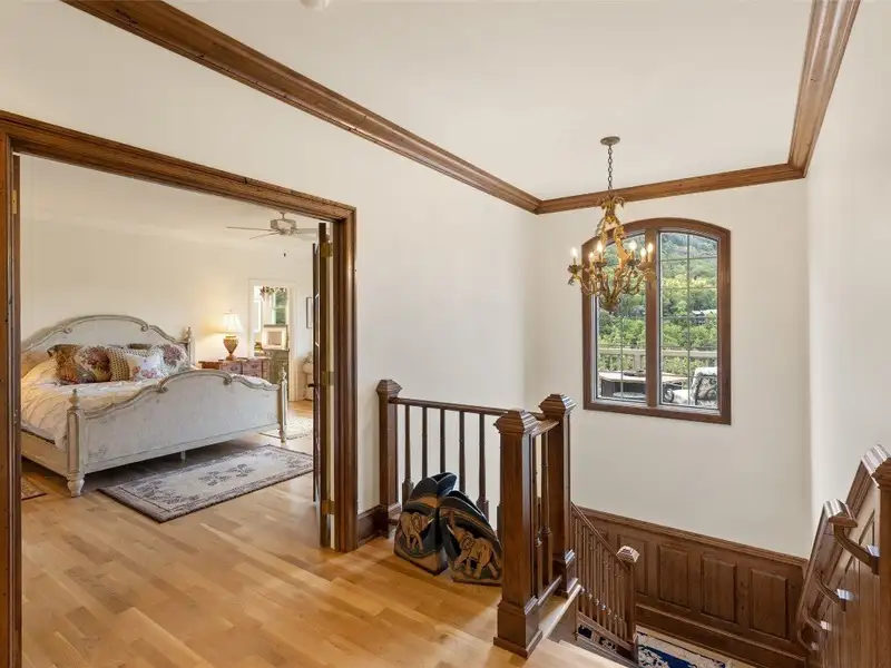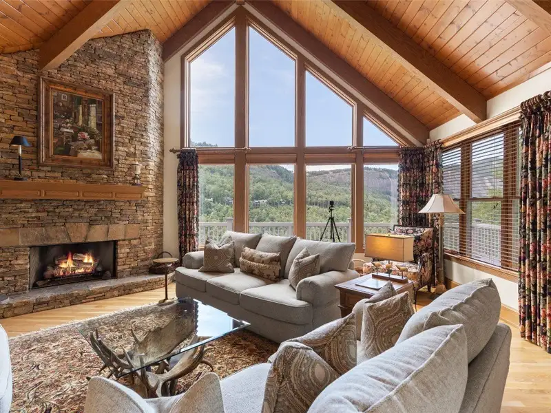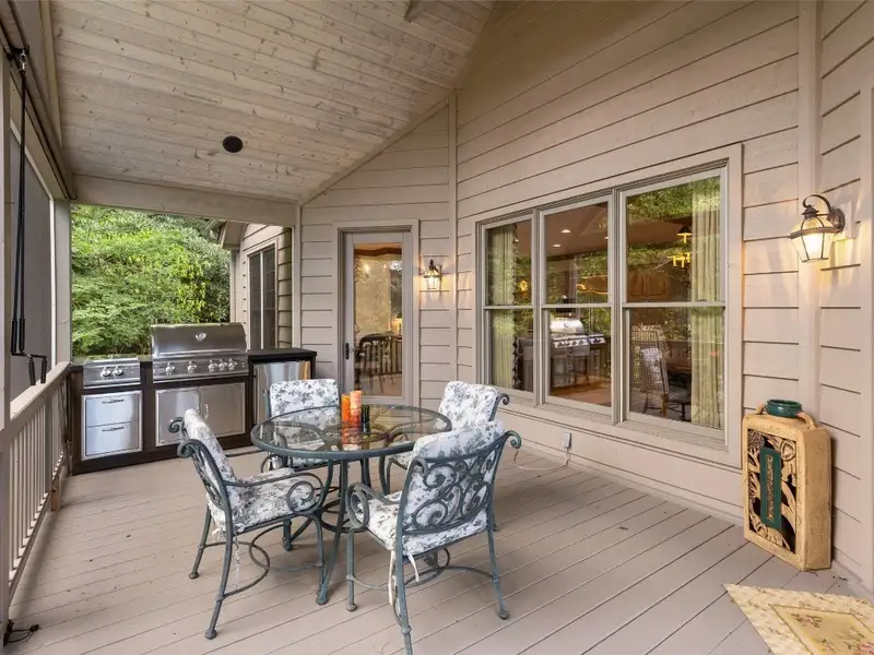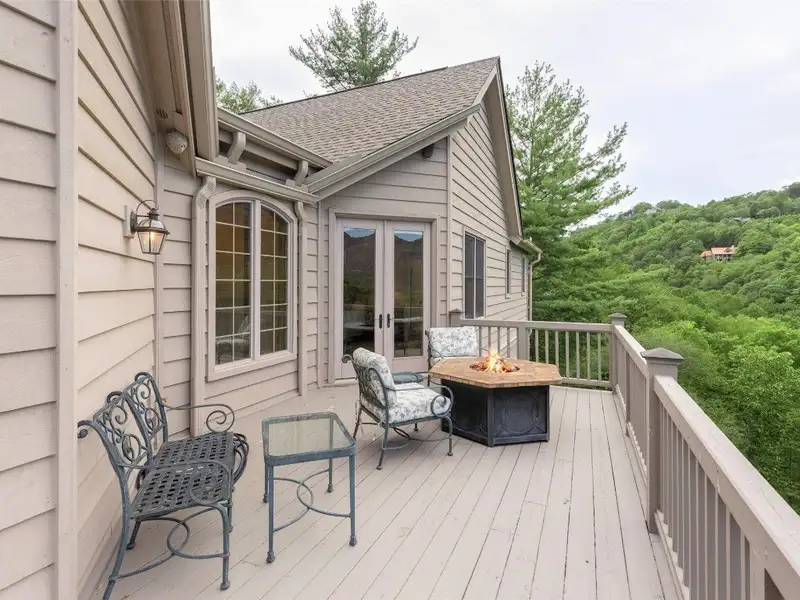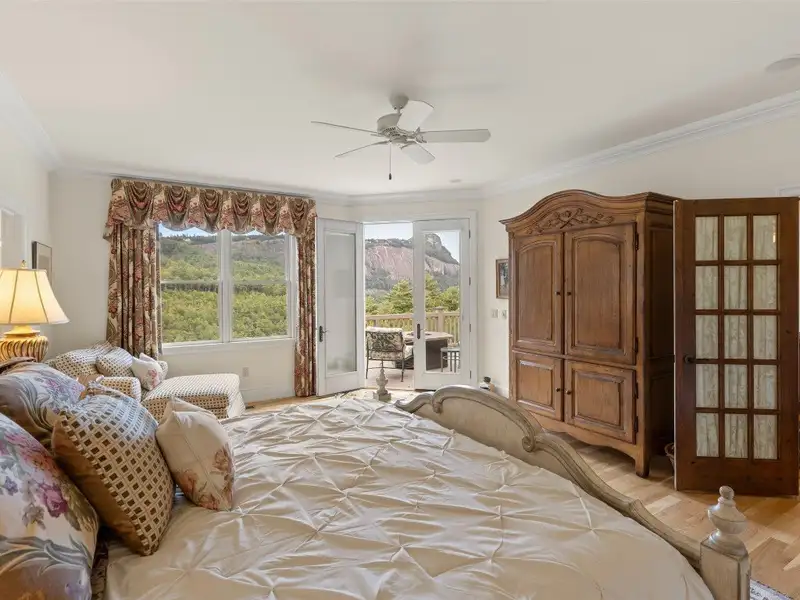 This is the Panoramic BIG VIEW! Prepare to be captivated by sweeping, unobstructed views of iconic Whiteside Mountain from this stunning Highlands Falls Falcon Ridge residence, a home so remarkable it has been featured twice in Architectural Digest. Designed with generous proportions and effortless flow, the home offers main-level living with the primary suite conveniently located on the entry level. Architectural details abound, highlighted by custom wormy chestnut and oak features throughout, including an impressive 3" solid wormy chestnut entry door. The primary suite commands breathtaking mountain views and sunrises and boasts a lavish Italian marble bath with soaking tub, oversized shower, dual lighted mirrors, hidden lighted vanity, Kohler fixtures, custom walk-in closets, and a private wet bar with sink and mini-fridge. The open-concept living, dining, and kitchen spaces flow seamlessly onto a screened porch with a fully outfitted grilling station featuring a Blaze grill-an entertainer's dream with Whiteside Mountain as the backdrop. The main level also conveniently includes a guest bedroom, full bath, office/den with custom glass paned wormy chestnut and oak door, and a full laundry room with sink. The lower level provides for guest privacy with a second living area with fireplace, private deck, two spacious en-suite bedrooms, powder room, bonus/flex room with gym/playroom potential, and a secondary laundry area. Recent upgrades are extensive, including a remodeled kitchen, refinished hardwood floors, 27 new windows, new roof, gutters with guards, encapsulated crawlspace, repaved driveway with focal pavers, updated HVAC systems, new water heaters with recirculation pump, blown-in attic insulation, new gas logs in main level fireplace, and view clearing to fully showcase dramatic views of Whiteside Mountain, Wildcat Ridge, and Cullasaja Club beyond. A drainage system beneath the upper deck ensures protection for the lower-level outdoor living area. Peace of mind comes with a 500-gallon fresh water reserve tank and a whole-house generator. A two-car garage with workshop, along with a welcoming exterior accented by a serene water feature, completes this mountain sanctuary. This Highlands Falls home is more than a residence-it is a retreat of timeless architecture, meticulous updates, and awe-inspiring views. Membership to Highlands Falls CC is not mandatory but the amenities are tremendous and the club is vibrant. See Attached Matterport for tour.