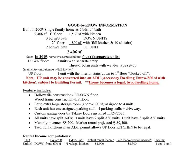 3024 Lakimau Street, Honolulu, Hawaii, 96815, USA offers the following features: