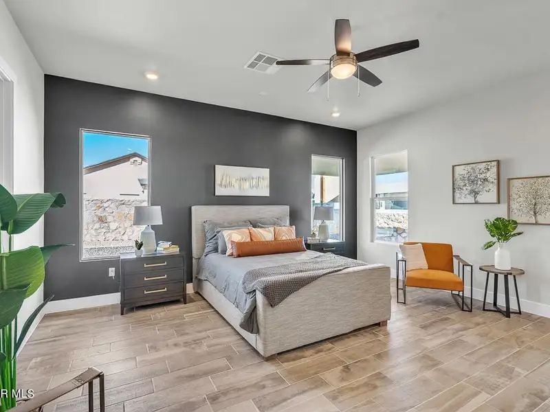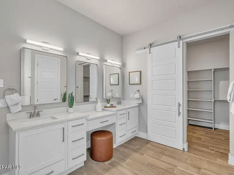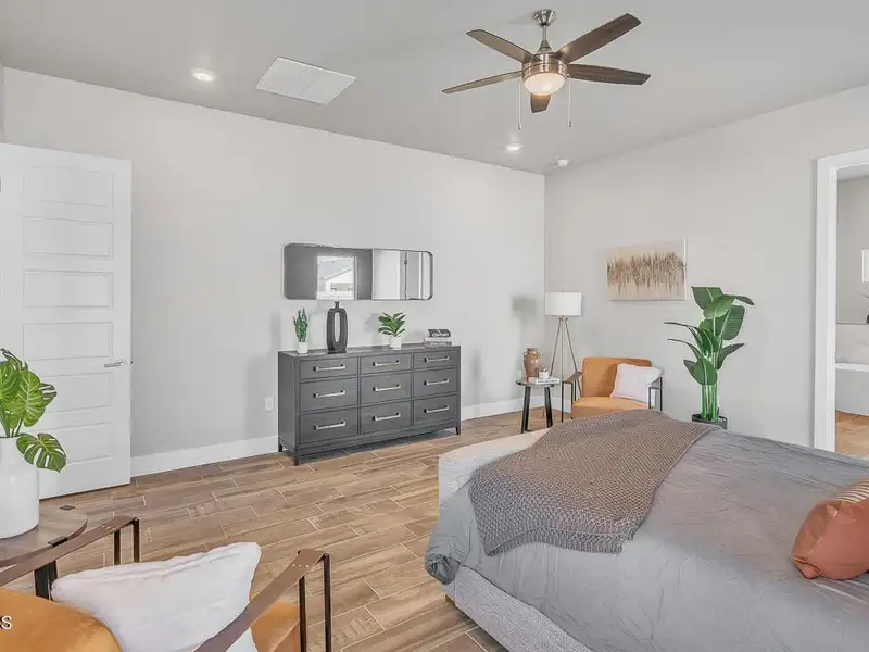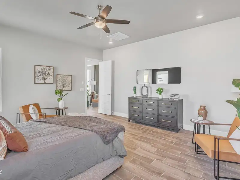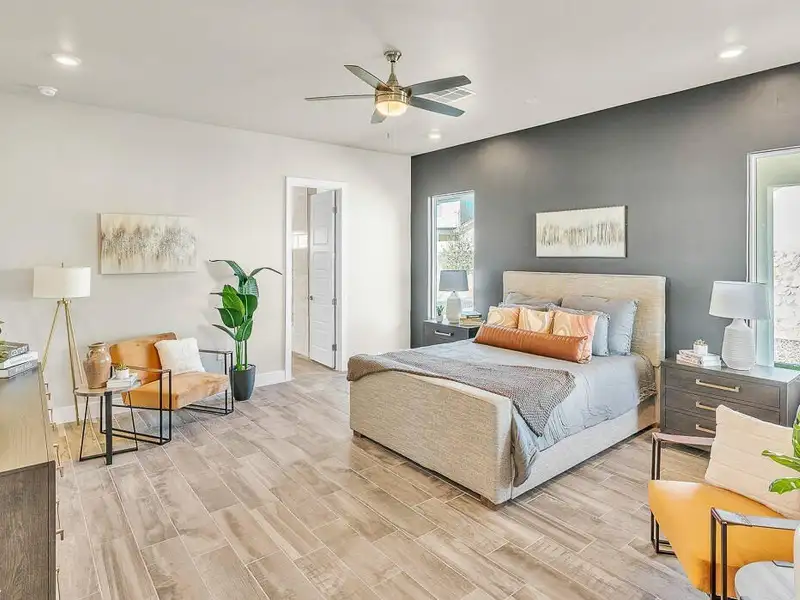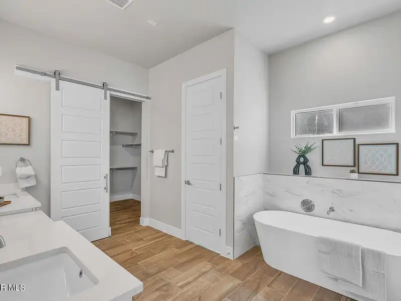 - Primary bedroom with soaking tub and walk-in closet