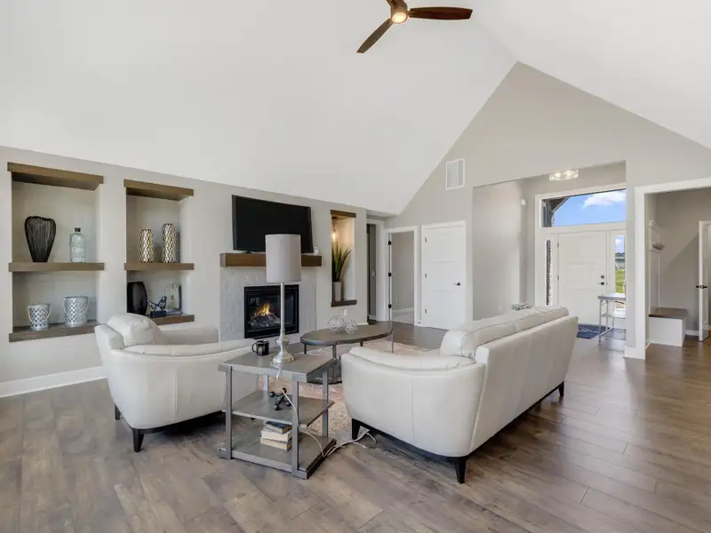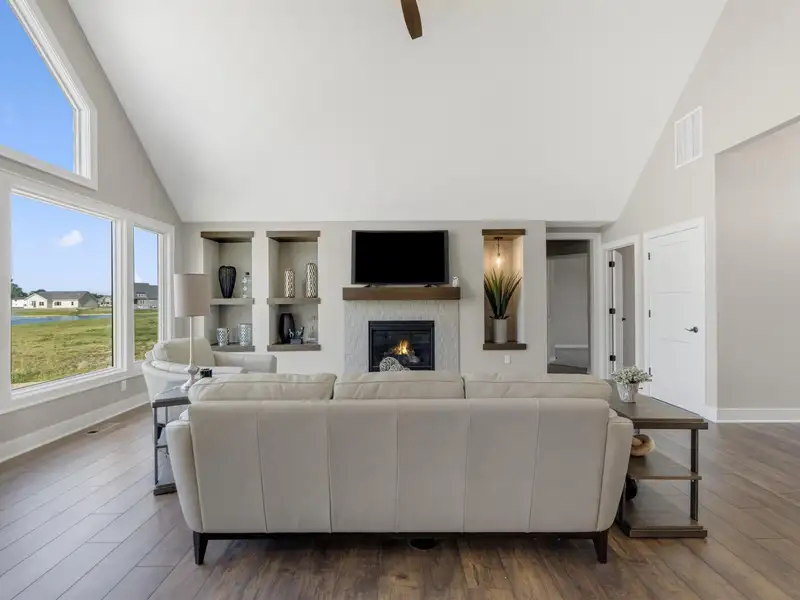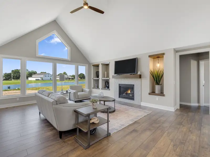 New Construction - Bob Buescher Homes is excited to announce the completion of a brand new single-story home in the highly sought-after community of Cascata Estates. This modern and functional layout encompasses 2,032 square feet of living space, featuring three bedrooms, two and a half bathrooms, an office, and a spacious three-car garage measuring 971 square feet. The home also boasts a rear covered porch with additional patio space, perfect for outdoor relaxation. The design showcases exceptional craftsmanship and meticulous attention to detail. The open concept seamlessly connects the great room, kitchen, and dining area, creating a harmonious flow throughout the space. Both the great room and foyer feature soaring cathedral ceilings that enhance the sense of openness, while a stylish fireplace serves as the focal point of the great room, adding warmth and sophistication. An abundance of natural light streams through the large windows, providing stunning views of the water lot with fountain. The custom-designed kitchen is a chef's dream, featuring handmade cabinetry, an expansive 8x3 island, and elegant quartz countertops. The pantry, with its impressive 10 feet of depth, includes a convenient coffee bar to enhance your culinary experience. The spacious primary bedroom suite offers a spa-like bathroom, equipped with a tile walk-in shower, a double vanity with a cultured marble top, a linen cabinet, and a generous 14-foot deep closet for ample storage. On warm days, new homeowners will enjoy relaxing under the covered rear porch while taking in the serene surroundings. This home also includes irrigation for your newly seeded lawn. All new Bob Buescher Homes come with a full kitchen appliance package, and all appliances are covered under their manufacturer's warranty. Additionally, homeowners will receive an invitation to attend an orientation prior to closing, where they will learn about the home’s warranties and maintenance tips. Cascata Estates, developed by Oakmont Development, offers a semi-rural lifestyle while remaining conveniently close to walking trails, shopping, restaurants, Parkview Regional Medical Center, and I-69N. Don’t miss your opportunity to make this beautiful masterpiece yours!