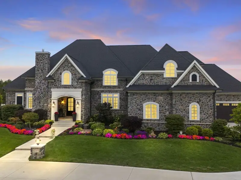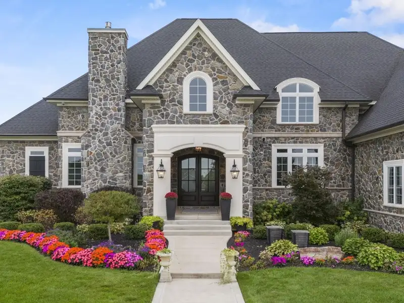 - European-inspired stone façade