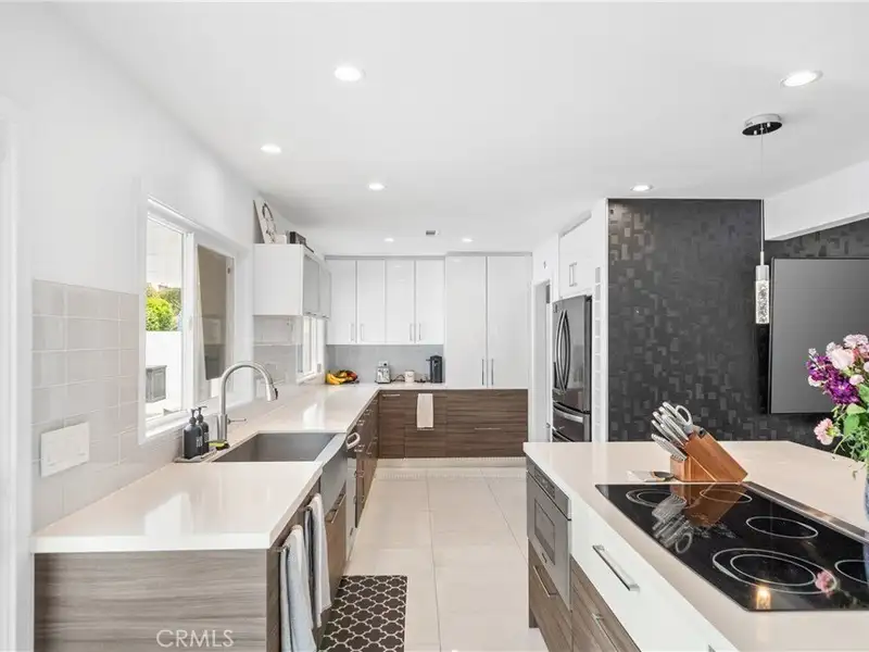 - Custom kitchen with quartz island