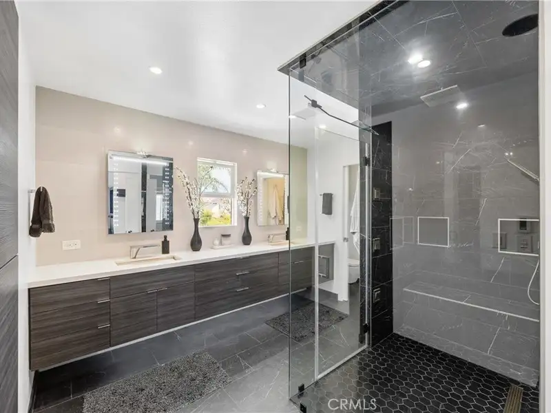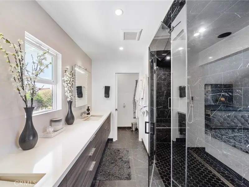 - Heated Italian porcelain tile flooring