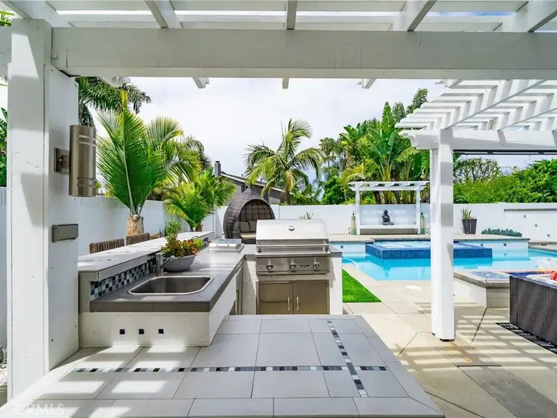 - Outdoor BBQ island with fridge and grill