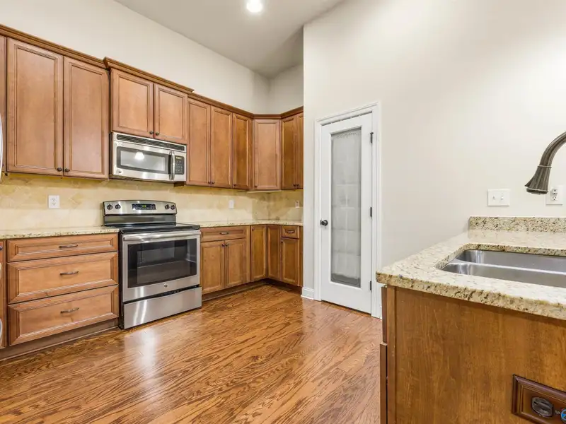 - Granite countertops in kitchen