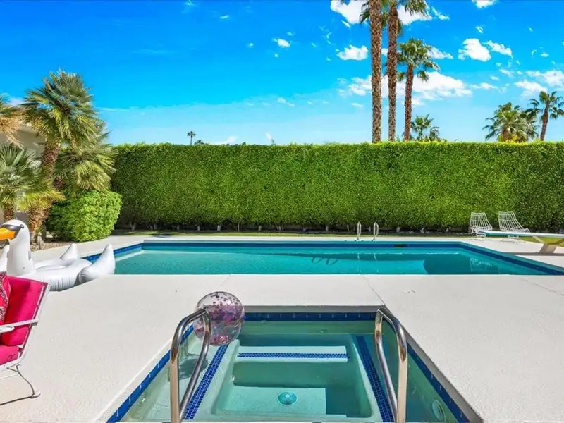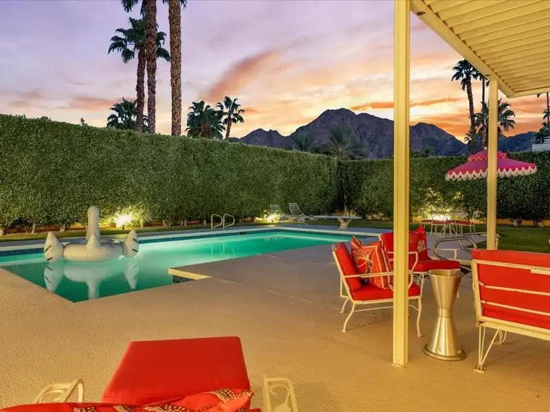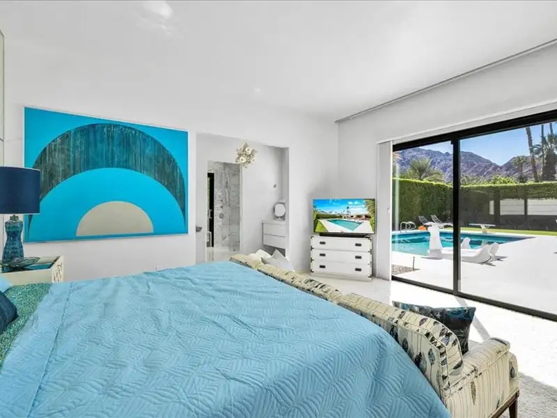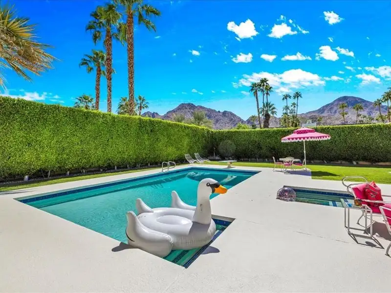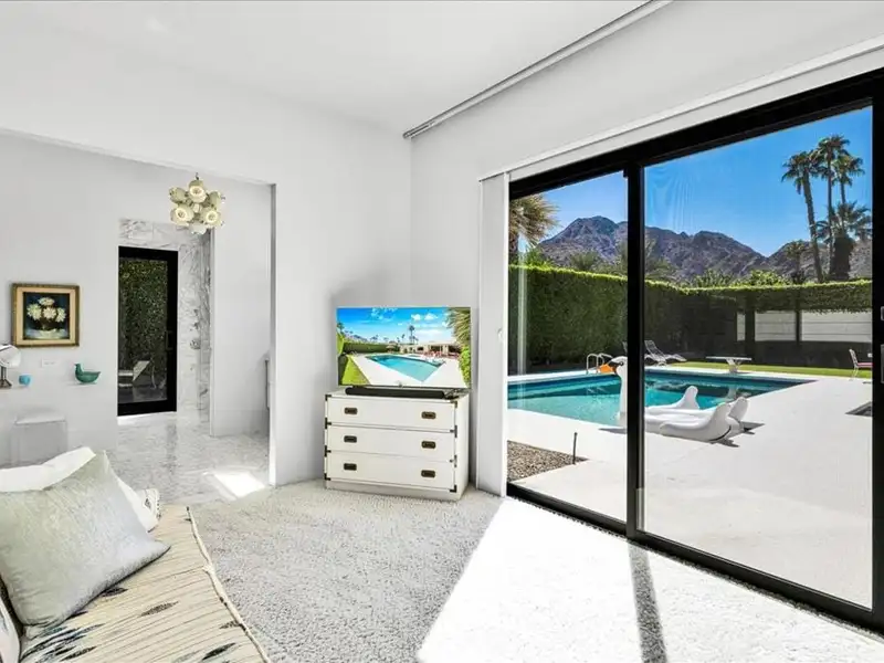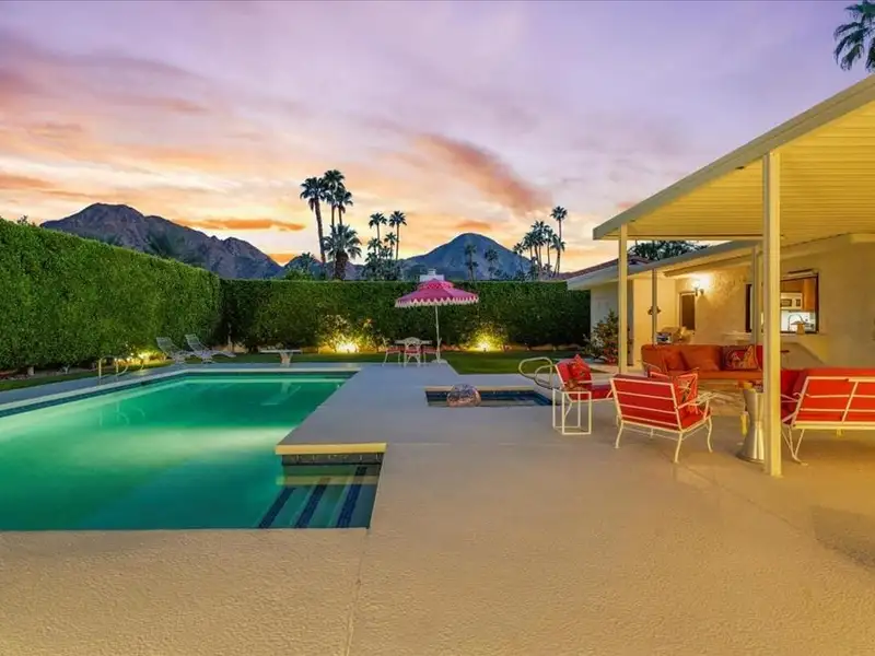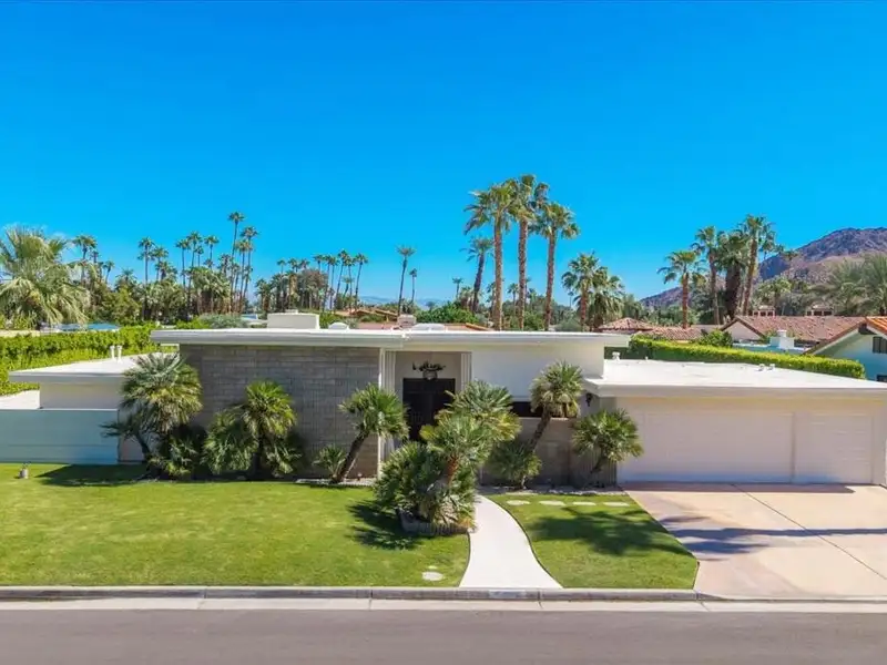 Nestled in one of the most beautiful and serene neighborhoods in Indian Wells, this mid-century home has been subtly and meticulously upgraded to maintain the best of its original charm. Textured relief on the front of the home is the first hint of mid-century character extending throughout the home. Intricately carved entry doors welcome you home with grace and elegance. A sunken living room with soaring ceilings is chic and comfortable, perfect for entertaining. A formal dining room opens out through Fleetwood sliders to a private front patio. The kitchen is updated with a Sub-Zero fridge and Viking induction range. A breakfast nook and family room are adjacent, with a cozy gas fireplace. Generously sized guest bedrooms make this a truly livable home. Each one accommodates a king-size bed and a desk or seating area. Each has a walk-in closet. The hall bath is large and serves both guest bedrooms, but could be converted into 2 separate en-suite bathrooms. The primary suite is a serene retreat, with direct access to the pool, a spacious walk-in closet, and a spa-inspired bath with soaking tub and walk-in shower. Wake up to spectacular views of Mount Eisenhower every day. On the south side of the home is a spacious laundry room and an in-law suite, with generously sized bedroom and a bathroom with its original countertop and shower tile in beautiful condition. A spotless, air-conditioned 3-car garage gives you plenty of room for your golf cart or a fun vintage car! Step outside to your private resort oasis, where a sparkling pool and spa are framed by lush landscaping and high hedges for the utmost in privacy. The covered patio gives you ample room for al fresco dining - seamless indoor-outdoor flow embodies the essence of desert luxury living. This home was designed and built by Vicki McDermott (Miss Palm Springs of 1961!) who is renowned for her gracious homes in the area. This coveted enclave east of Eldorado has no HOA! As an Indian Wells resident, you'll enjoy exclusive privileges, including golf and spa discounts at world-renowned resorts, adding to the unmatched lifestyle you will lead. Indian Wells allows rentals of 29 nights or more year-around and one short-term (7-night minimum) rental during the annual BNP Paribas tennis tournament. Homes in this neighborhood are rarely available. This is an exceptional opportunity to own in one of Indian Wells' most distinguished communities. Make an appointment to see it today!