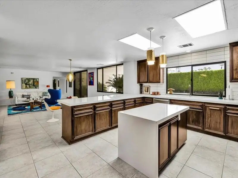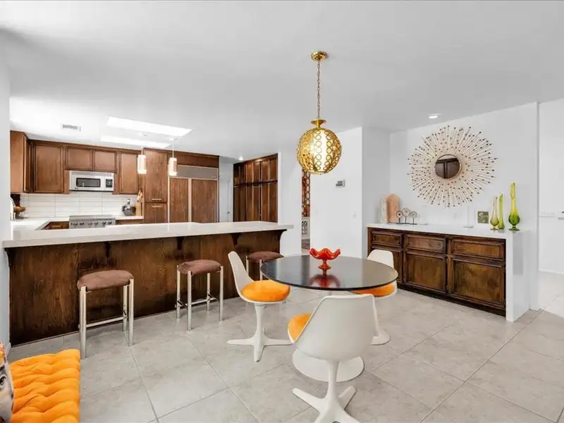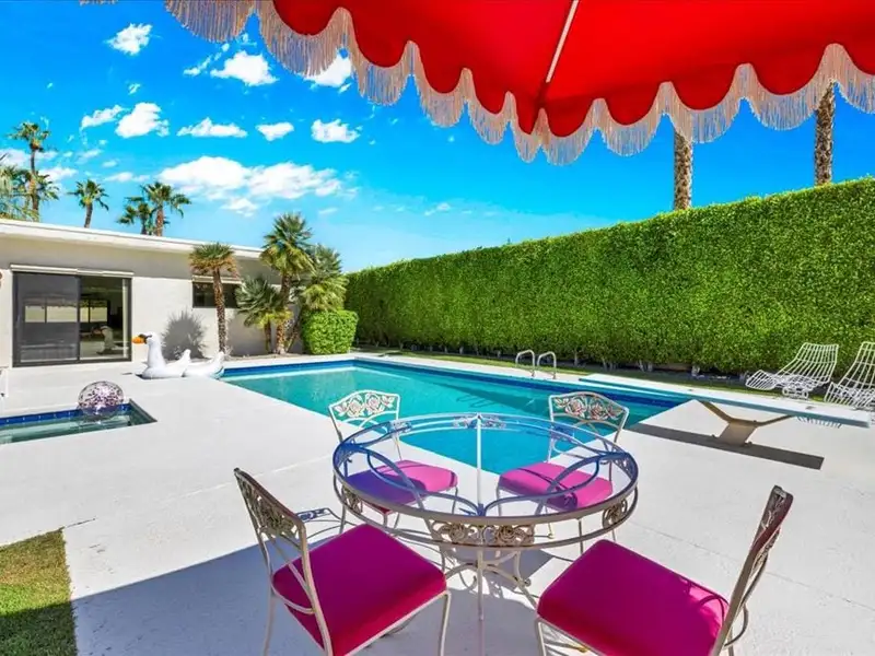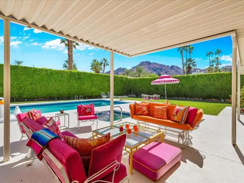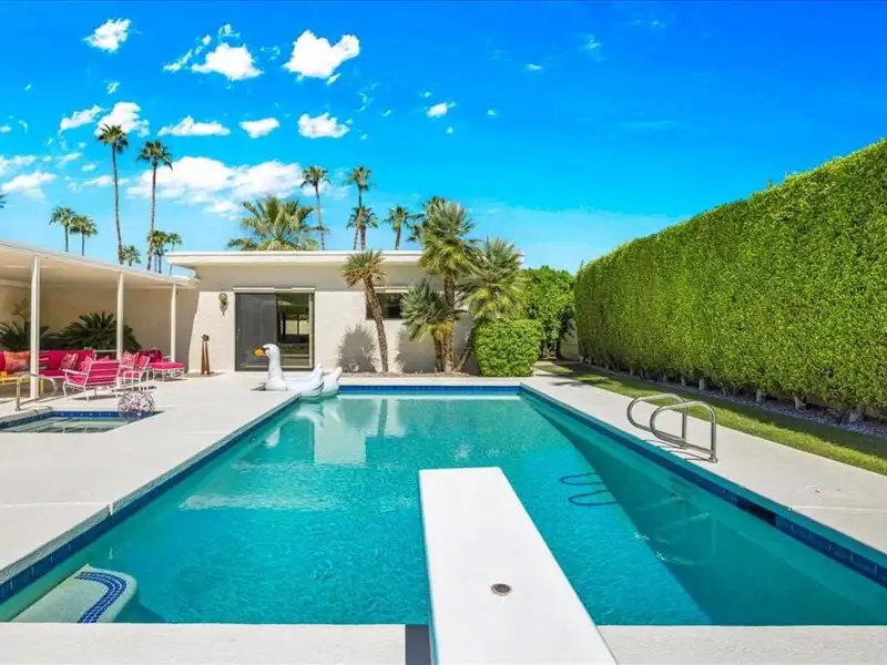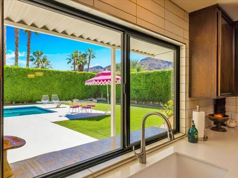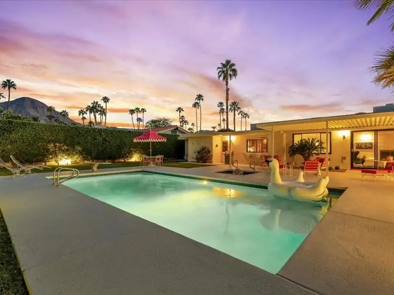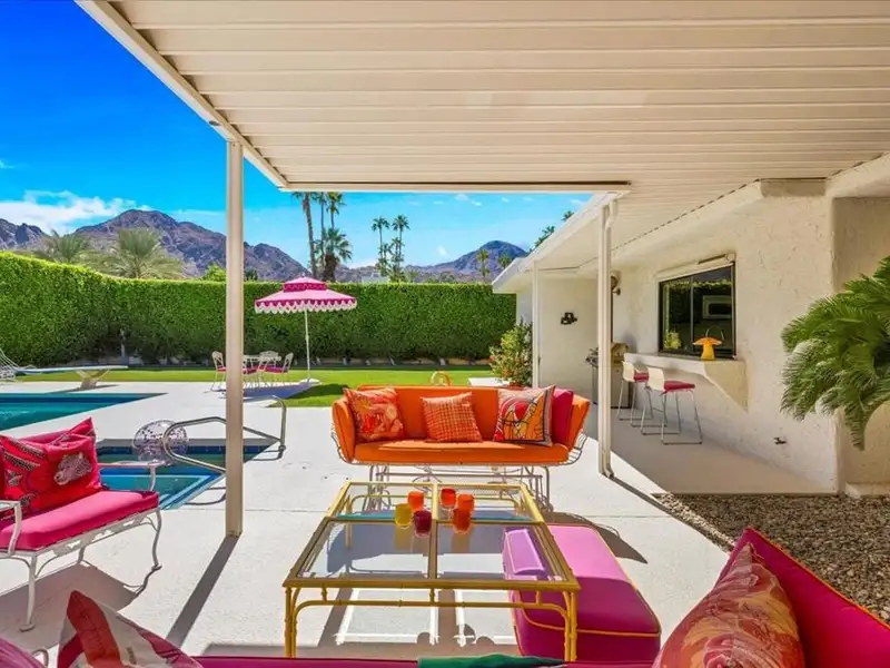 Nestled in one of the most beautiful and serene neighborhoods in Indian Wells, this mid-century home has been subtly and meticulously upgraded to maintain the best of its original charm. Textured relief on the front of the home is the first hint of mid-century character extending throughout the home. Intricately carved entry doors welcome you home with grace and elegance. A sunken living room with soaring ceilings is chic and comfortable, perfect for entertaining. A formal dining room opens out through Fleetwood sliders to a private front patio. The kitchen is updated with a Sub-Zero fridge and Viking induction range. A breakfast nook and family room are adjacent, with a cozy gas fireplace. Generously sized guest bedrooms make this a truly livable home. Each one accommodates a king-size bed and a desk or seating area. Each has a walk-in closet. The hall bath is large and serves both guest bedrooms, but could be converted into 2 separate en-suite bathrooms. The primary suite is a serene retreat, with direct access to the pool, a spacious walk-in closet, and a spa-inspired bath with soaking tub and walk-in shower. Wake up to spectacular views of Mount Eisenhower every day. On the south side of the home is a spacious laundry room and an in-law suite, with generously sized bedroom and a bathroom with its original countertop and shower tile in beautiful condition. A spotless, air-conditioned 3-car garage gives you plenty of room for your golf cart or a fun vintage car! Step outside to your private resort oasis, where a sparkling pool and spa are framed by lush landscaping and high hedges for the utmost in privacy. The covered patio gives you ample room for al fresco dining - seamless indoor-outdoor flow embodies the essence of desert luxury living. This home was designed and built by Vicki McDermott (Miss Palm Springs of 1961!) who is renowned for her gracious homes in the area. This coveted enclave east of Eldorado has no HOA! As an Indian Wells resident, you'll enjoy exclusive privileges, including golf and spa discounts at world-renowned resorts, adding to the unmatched lifestyle you will lead. Indian Wells allows rentals of 29 nights or more year-around and one short-term (7-night minimum) rental during the annual BNP Paribas tennis tournament. Homes in this neighborhood are rarely available. This is an exceptional opportunity to own in one of Indian Wells' most distinguished communities. Make an appointment to see it today!