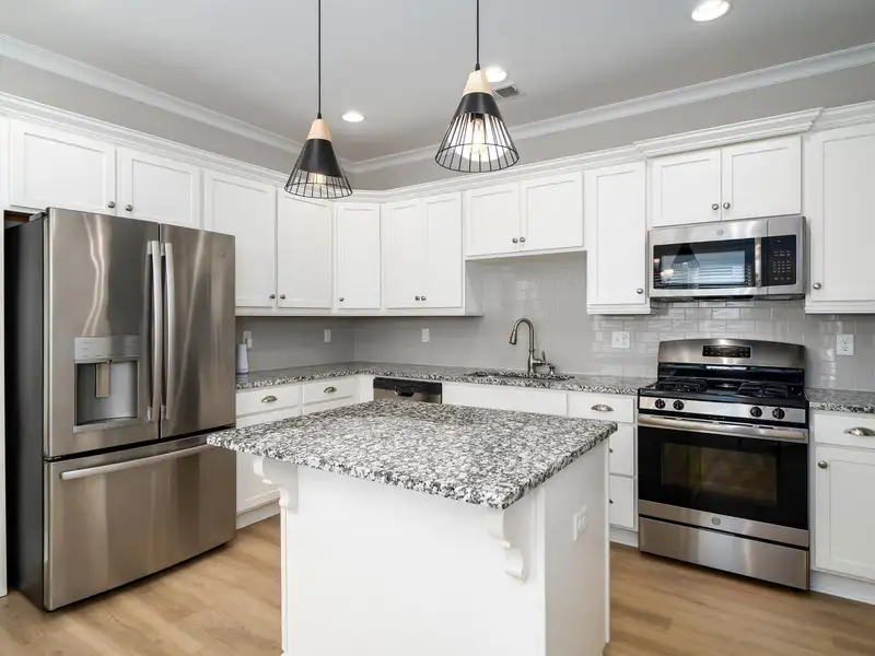 - Kitchen with granite and stainless steel