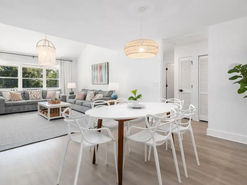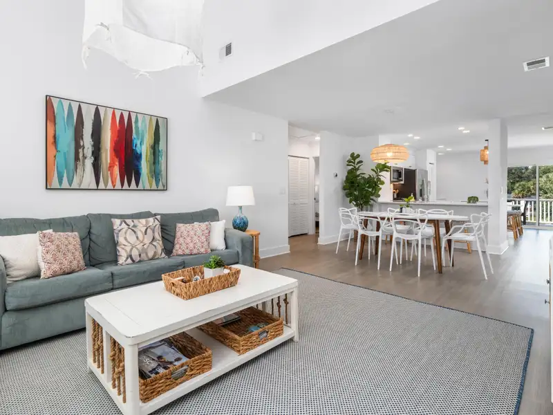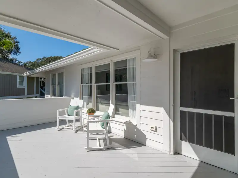Beautifully remodeled and elevated beach bungalow in Isle of Palm's Beachside community that embodies a convenient IOP beach lifestyle, while retaining a private community feel. Park the car and forget about it--everything you love about island living is just steps away. From sun-soaked beach days to evenings filled with live local music, this home captures the relaxed coastal vibe that makes IOP and the Lowcountry so beloved.Enter the home through the spacious sun deck and additional screen porch complete with lazy day porch swing and big ceiling fan. Venture inside and be surprised by the immediate airy vaulted living room ceiling. The inviting family room features space for relaxing in AC comfort and a dining area perfect for gatherings.The home was completely renovated in 2022 down to the studs, making it move-in ready for a new owner or seamless for rental guests.