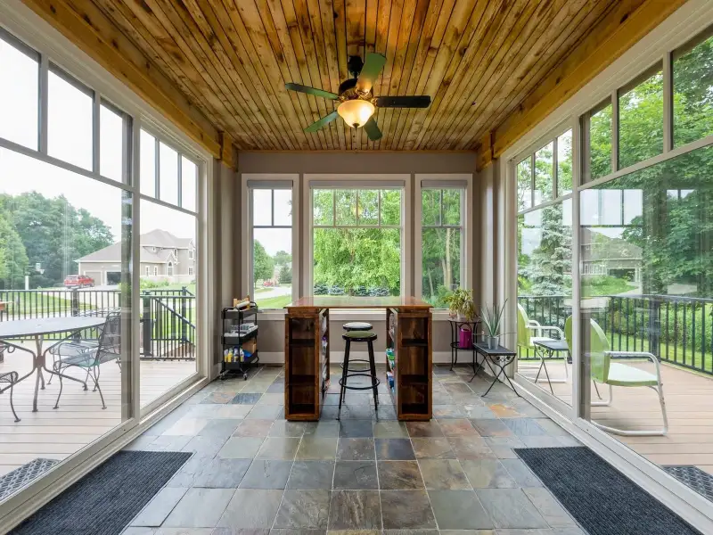 - Four-season sunroom with panoramic views