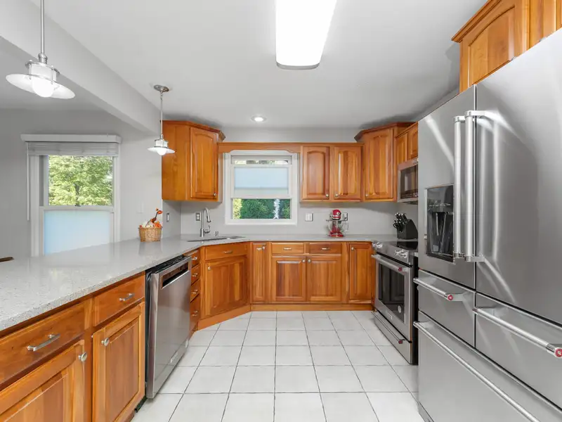 Come discover the perfect balance between home and property at 4752 Forest Creek. The current owners have thoughtfully elevated an already well-crafted home with a host of meaningful updates. Recent improvements include a radon system for peace of mind, a new hot water heater (2022), an updated sump pump, a new furnace igniter for improved efficiency, and exterior lights at the garage and front entrance. Additional enhancements include staircase motion lighting, new carpet on the upper level and stairs, and brand-new kitchen appliances, washer, and dryer. Outside, the deck and stairs have been stabilized and painted, while tree removal has eliminated safety concerns. Landscaping upgrades include pea gravel surrounding much of the home, a charming rose garden with wishing well, and the addition of cherry and apple trees. A professional lawn service has meticulously maintained the yard and gardens, and the exterior of the home has been professionally soft washed on a regular basis. All these enhance the stunning fenced-in lot, which backup to privately owned wooded acreage. From the curb, the home makes a striking impression in this scenic neighborhood. Step inside, and you'll be greeted by expansive windows framing a beautiful seasonal backyard with views of a large pond beyond the fence line. The great room's soaring ceilings, wood floors, and stone fireplace create a warm, inviting retreat. The open floor plan flows seamlessly into the dining area with sliders to the expansive deck and the kitchen, showcasing raised-panel cherry cabinetry, a snack bar, and quartz counters. The main floor primary suite is ideal, featuring a double-sink vanity, jetted tub, separate shower, and walk-in closet. Completing the main floor are a laundry room, mudroom, and half bath, with the garage offering a new opener and updated lighting. Upstairs, you'll find two additional bedrooms each with walk-in closets and a family bath with dual sinks. The walkout lower level adds even more living space, including a spacious family room, two additional bedrooms, and a third full bath. Don't miss the chance to make this beautifully maintained and thoughtfully updated home yours.
