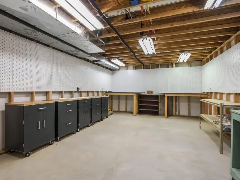 - Basement with large workshop and storage
