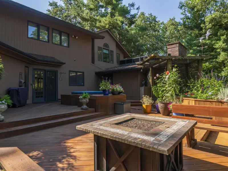 The Whippoorwill Way of Life: Your Dream Home in Texas Township Welcome to an exceptionally warm and inviting custom-built estate in a sought-after neighborhood. This property isn't just a house; it's a home you'll love to come back to, designed for easy, comfortable living where every detail enhances your experience. This elegant yet cozy residence effortlessly blends a luxurious interior with a magnificent natural sanctuary. Designed for Comfort and Entertaining: The well thought out layout flows beautifully for both daily life and entertaining. The main floor features a comfortable living room, a formal dining room ideal for memorable dinners, and an inviting sunroom with panoramic views of the backyard's Japanese water feature. Culinary enthusiasts will adore the chef's kitchen with dual sinks, high end appliances, granite counters, and incredible storage, all flowing into a casual eating area. The main level also boasts a sophisticated study with a full bar, a well-equipped hobby room, and a large mudroom with individual closets for every member in the household leading directly to the oversized three car garage. The Ultimate Retreats: Upstairs, the extraordinary primary suite redefines comfort with two separate bathrooms, and exceptional built-in storage. The upper level also features a lovely ensuite bedroom and a private wing behind French doors - an ideal household or guest suite with a separate living area and two additional bedrooms, each with a vanity, and a shared bath. The lower level is dedicated to entertainment and wellness, featuring an incredible home theater with a snack room, a spacious mirrored home gym, and a post-workout sauna. A Backyard Oasis for All Ages: Step outside to a sprawling, magical backyard sanctuary designed in a circle of four distinct fenced-in garden areas. The Japanese Garden features a Koi Pond and an enormous deck, perfect for outdoor living with a fire pit, hot tub, and dining area. Follow the walkways to the English Country Garden with quiet seating, the serene Gazebo & Butterfly Garden with a soothing "Rocky Mountain" stream overlooking Portage Creek, and an amazing play structure combined with floral beauty. This immaculate, curated property is truly a "staycation" home - a legacy waiting for your next chapter. Website: