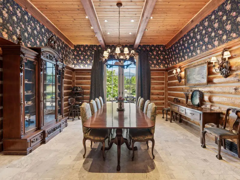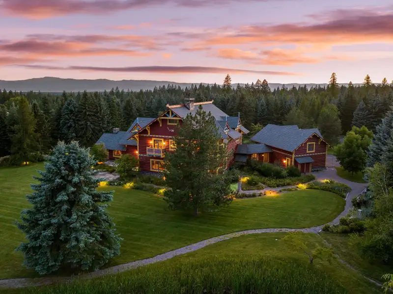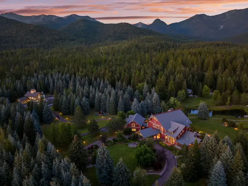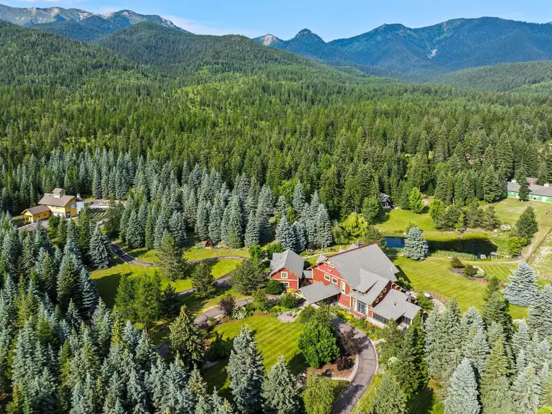 Where legacy meets wilderness! An iconic 14,228 SF lodge with five additional homes on nearly 60 acres of hayfields, forest, fenced pasture, and trails. A rare Montana sanctuary and compound built for gathering, roaming, and living fully immersed in nature. Plaid Swan Ranch is among the most distinguished estates in the Flathead Valley, representing a magnificent offering where cinematic legacy and Montana's raw natural beauty converge. Encompassing nearly 60 acres of pristine land at the base of the Swan Mountain Range, this exceptional property includes fabulous views of Jewel Basin, one of northwest Montana's most unique hiking areas. Just 30 miles from Glacier Park International Airport and a short drive from the vibrant village of Bigfork, this property is an exceptional haven for those who value both seclusion and proximity to vibrant community life. At its center stands an extraordinary 14,228 square foot, chalet-style main residence inspired by the iconic McDonald Lake Lodge in Glacier National Park. Designed with a refined, upscale mountain style and decorated to represent a European hunting lodge, this architectural masterpiece showcases a breathtaking great room of more than 2,000 square feet, with soaring 27-foot vaulted ceilings and an impressive stone fireplace that doubles as a rock-climbing wall. Blending luxury and function, the home is set up for unforgettable entertaining and features a sunroom with fossil stone floors and exquisite hand-painted ceiling murals, elegant marble-floored dining areas, a custom-designed theater, an expansive wine cellar accommodating approximately 2,900 bottles, multiple balconies and patios, whole-house speakers and smart lighting automation, an elevator servicing all levels, and countless refined and romantic touches throughout. Beyond the main residence, the estate offers a wealth of additional accommodations and amenities. These include a 2BD/1BA carriage house apartment attached to the main residence; a 2BD/1BA caretaker's cottage; two charming 1BD/1BA guest chalets; a 2BD/1BA fairytale-like cottage, enchanting visitors with its storybook character; and a 1BD/2BA ranch house. A 4,200-square-foot, 4-stall stable complements the property, alongside cross-fenced pastures, a private trout-stocked pond, Finnish sauna, scenic walking trails, a greenhouse, chicken coop, and an array of outbuildings that include a heated generator house and loafing sheds. Approximately 20 acres are dedicated to dryland hay, with another 20 acres of mature forest, while the remaining acreage encompasses barns, pastures, manicured landscaping, and residences, all seamlessly connected by a winding paved driveway, adorned with wired lamp posts, that ensures privacy and effortless access throughout the estate. No expense was spared in developing this remarkable property, which features superior infrastructure and exceptional versatility for a wide range of uses. Whether envisioned as an exclusive family compound, an equestrian paradise, a retreat space, a luxurious wedding venue, or a serene wellness sanctuary, Plaid Swan Ranch presents a rare opportunity to own a true Montana legacy estate - one that stands as a masterful fusion of history, refined design, and enduring beauty. This property is offered turn-key with exclusions and enjoys the benefits of no HOA or CC&Rs. Plaid Swan Ranch is not merely a property, but an invitation to embrace the grandeur, serenity, and boundless possibilities that define the Montana dream. A 55+ page Homebook will be provided upon request. All prospective buyers must provide financial pre-qualifications/certification of funds, information on buyer profile, and sign an NDA prior to showing.