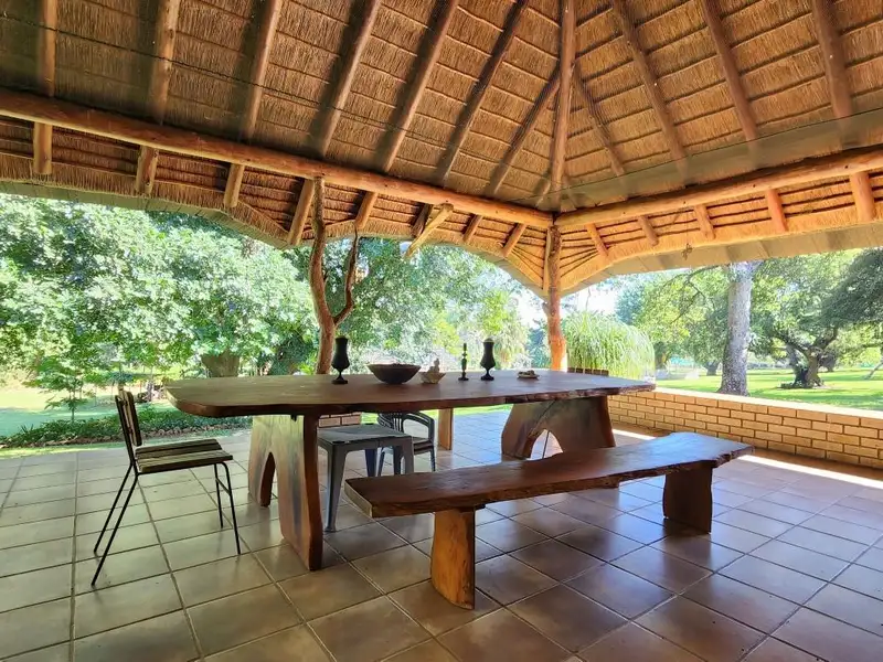 Unwind and entertain in style under the thatched Lapa, a traditional South African haven for outdoor gatherings. Let the gentle murmur of the bordering Komati River lull you into a state of complete relaxation as you take in the breathtaking scenery. This exceptional property offers more than just a place to live; it offers a lifestyle steeped in beauty, tranquility, and endless possibilities.
