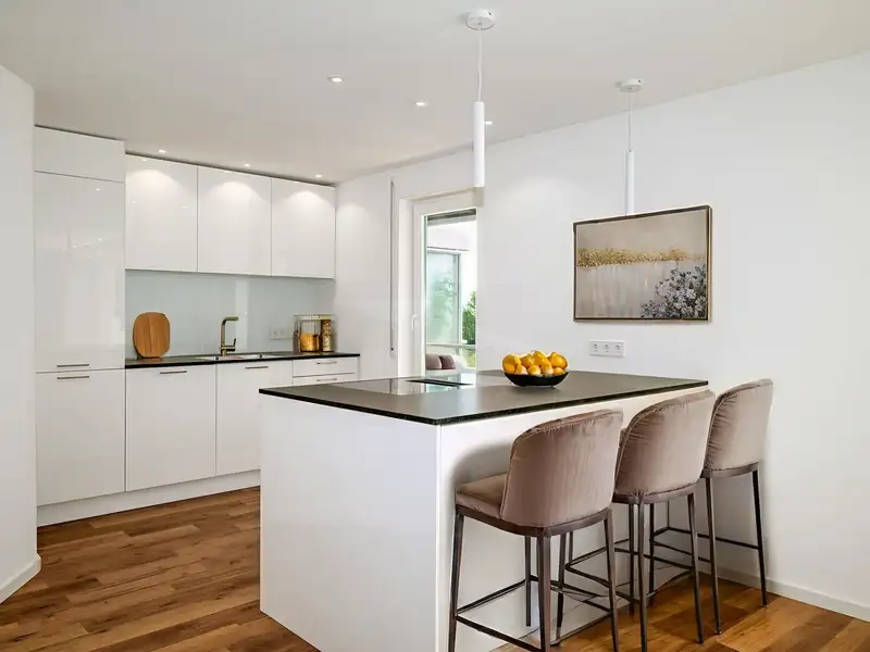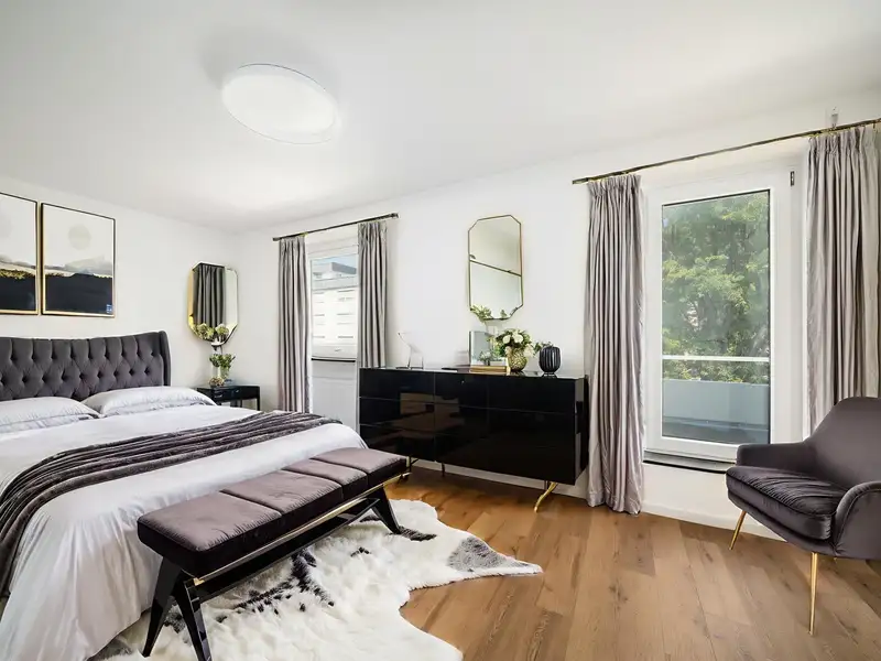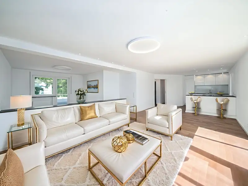The upscale furnishing quality of this apartment is underlined by carefully selected materials and a harmonious color concept, which ensure a harmonious overall picture. The furnishings and room layout have been designed with comfort and functionality in mind.