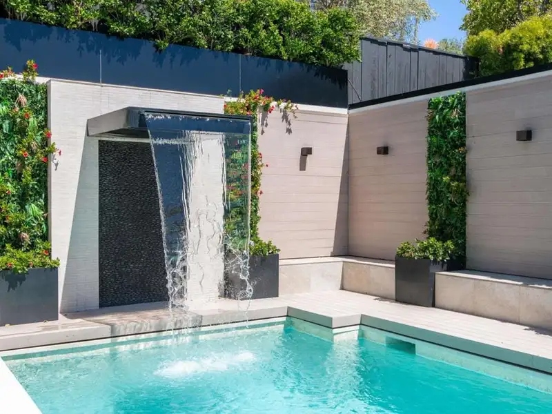 - Gated courtyard with pool and waterfall
