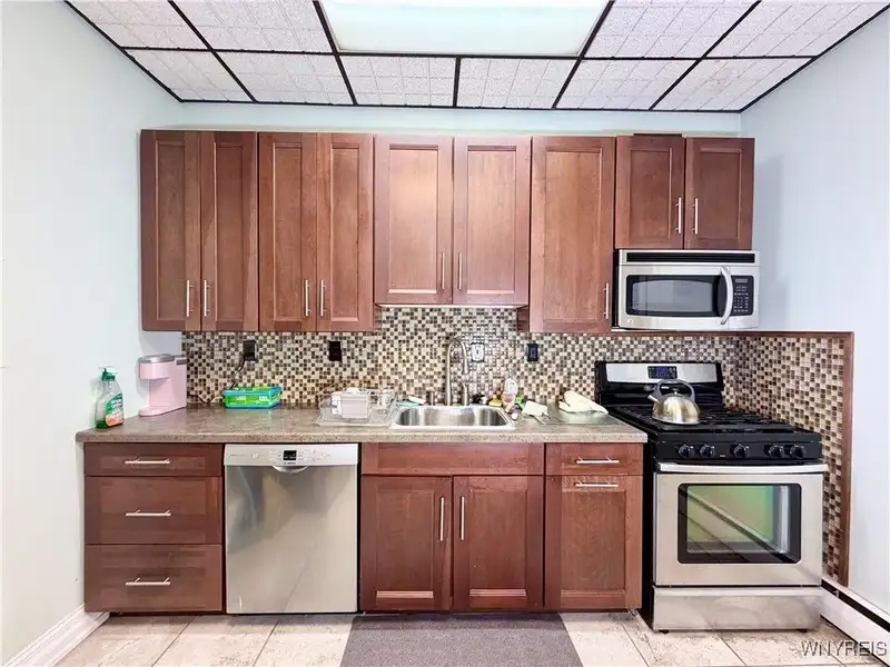 - Updated kitchen in rear apartment
