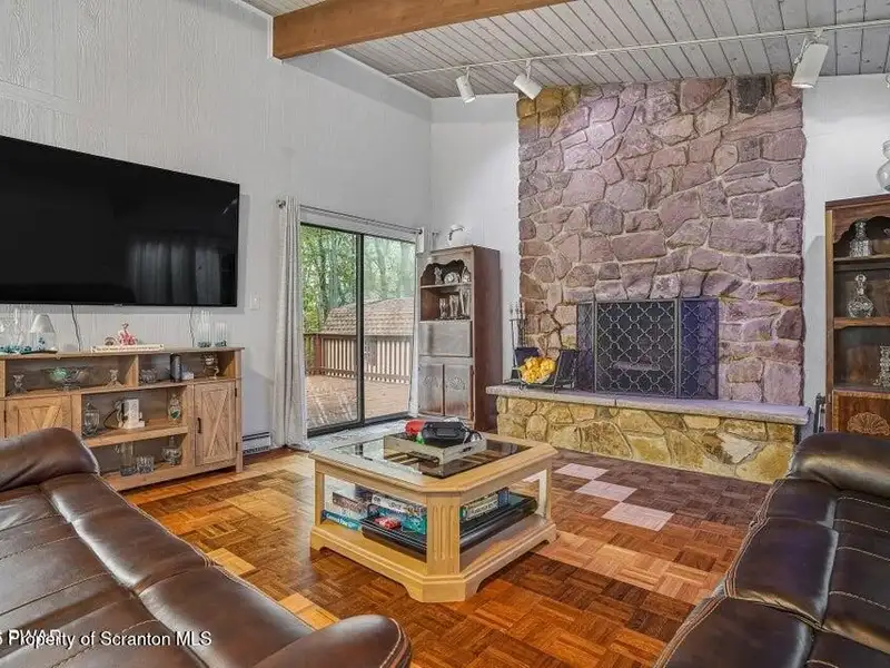 - Cathedral ceiling and wood-burning fireplace