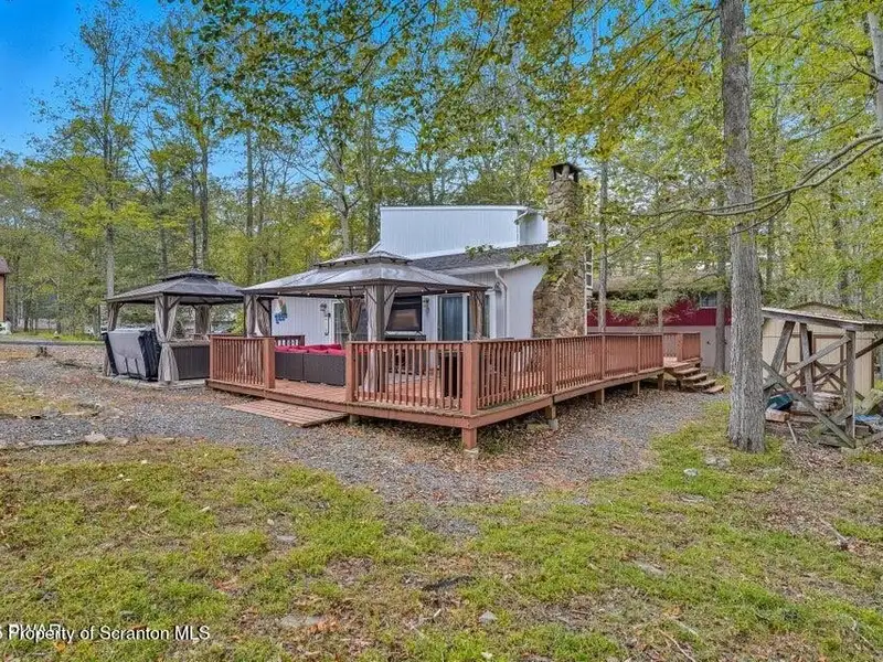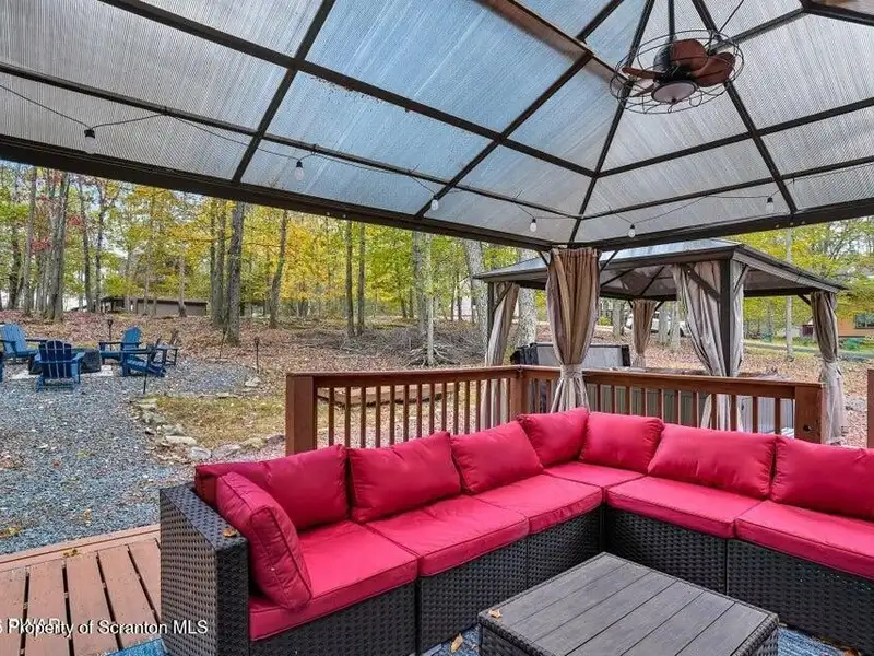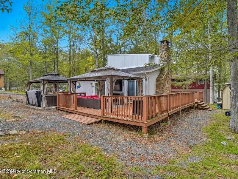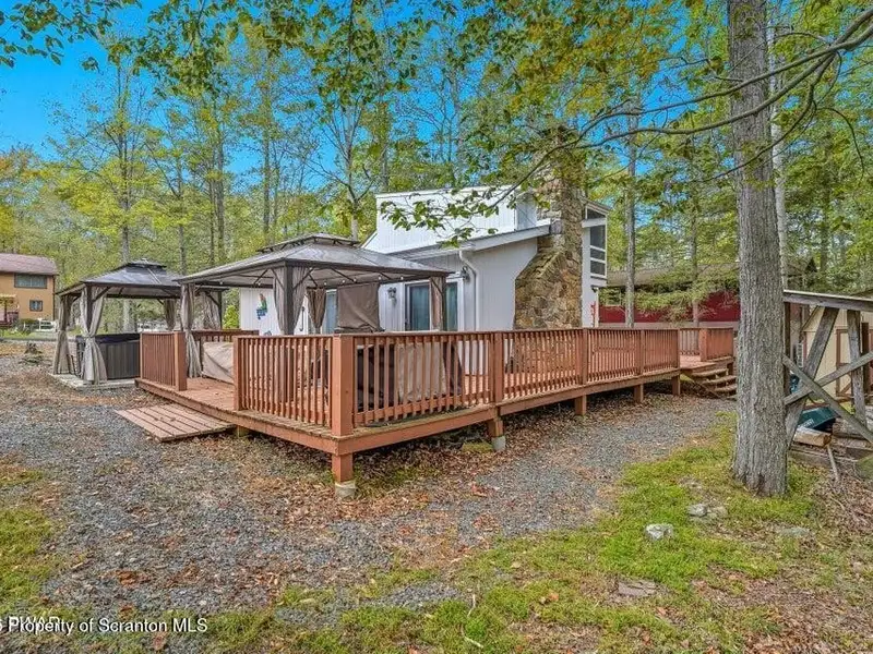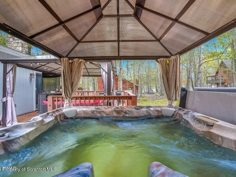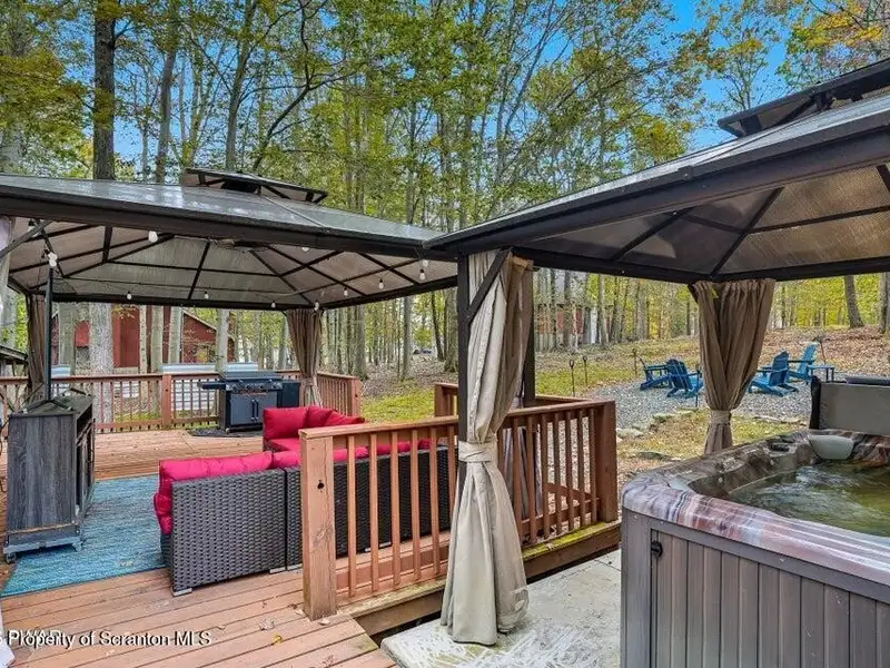 - Expansive wrap-around deck with hot tub and fire pit