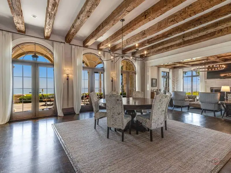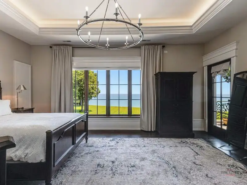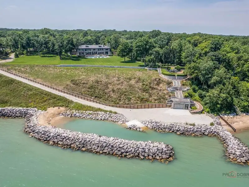 Opportunity of a lifetime to own this spectacular Lake Forest estate, spanning over 5.27 acres with 570 feet of Lake Michigan frontage! After four years of construction, incorporating everything the most discerning buyer would expect in new construction, this estate was completed in 2019. Featuring a protected cove beach, 2 boat launches, a fabulous pool, spa, boathouse and garage space for 22 cars, this home is the epitome of luxury living! Drive through the gated southern entrance to the boathouse or use the opulent historic monumental staircase, enjoying the details of the grand marble fountain and stairs to the boathouse from the original Harold F. and Edith Rockefeller McCormick estate. This magnificent home boasts 10,000 SF of sophisticated and stately living space above grade, 5,000 SF of exquisitely finished lower-level space and 6,000 SF of beautifully finished garage space for 16 cars, with elevator access to all 4 levels. As you enter the grounds of this breathtaking estate, there is a circular stone drive that leads to the stone forecourt w/ two, 3-car garages and a driveway to the underground 16 car garage, all w/ snow melt systems. This stone and brick home has a slate roof w/ custom copper gutters & downspouts, Marvin windows & doors, high ceilings, deluxe designer lighting, smart house technology, geothermal heating and cooling w/ radiant heat floors on all 4 levels, and a back staircase w/ access to all levels. The outdoor amenities are beyond compare and include a pool with deck jets, diving board and under water speakers, a spa with a fountain and 2 fire bowls, an outdoor kitchen and bluestone terraces w/ 3 loggias, one with a TV and fireplace. The custom 3 1/2 inch thick white oak front door with sidelights and artistic wrought iron detail opens to the foyer with limestone floors and 8 custom, concealed wood paneled closets. The handsome library w/ walnut bookshelves, library ladder, intricate millwork, and fireplace has French doors that open to the back loggia with panoramic views of the lake and access to the northern 3 car garage with separate loggia. The east loggia connects to the living room and overlooks the pool, expansive grounds and Lake Michigan. The living room opens to the elegant dining room, which is adjacent to the breakfast room and exquisite Christopher Peacock kitchen and butler's pantry w/ white high gloss cabinetry w/ walnut interiors, and thick quartzite countertops. The massive island has Bahia granite countertops, refrigerator drawers and seating for 4. La Cornue, Miele and Sub-Zero appliances complete this gourmet kitchen which is open to the stunning family room. The exquisite staircase to the second floor is oval w/ custom wrought iron railings that blend utter sophistication with today's living. The luxurious primary suite has incredible views of the lake w/ French doors accessing a private blue stone balcony. The suite contains two separate custom closets w/ designer lighting, 2 linen closets, and a wet bar. The primary bathroom has a large frameless steam shower and lovely soaking tub that overlook the lake w/ two separate custom vanities w/ indirect cove lighting accenting the gold leaf barrel vault ceiling. En-suite bedrooms 2, 3 and 4 have wide plank hardwood floors, gorgeous bathrooms and access to a secondary balcony on the east side of the home w/ magnificent views of the lake. Bedroom 5 has a wonderful balcony with sunset views, 2 custom closets and a fabulous bathroom w/ separate tub and shower. The huge laundry room w/ 3 washing machines and 3 dryers completes the second floor. The lower level has one additional bedroom currently used as a gym, a phenomenal theatre room that seats 16, an incredibly luxurious spa room w/ a large RIVA jetted tub w/ rain shower above, fireplace, steam shower & sauna, a lounge w/ an expansive custom designed wet bar, outstanding wine cellar w/ views of the 16-car garage, a billiards room & 2nd family room w/fireplace. ABSOLUTE PERFECTION