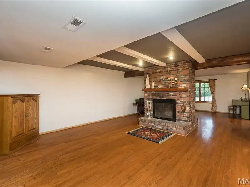 - Floor-to-ceiling fireplace in living room
