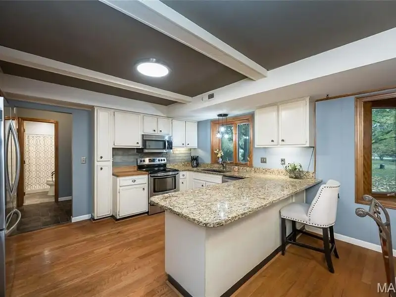 - Granite countertops in kitchen