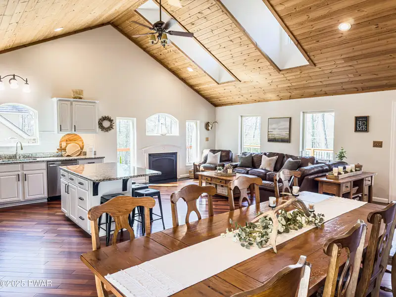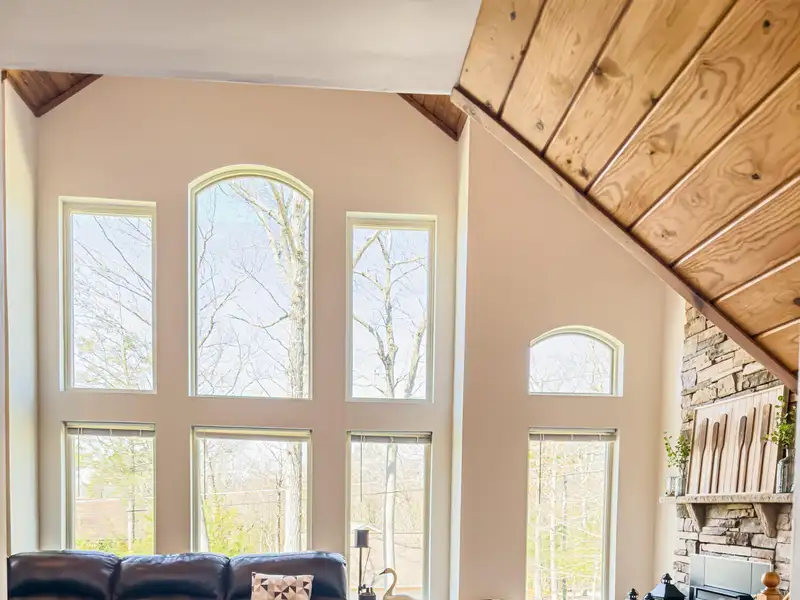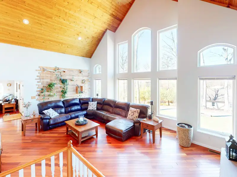- Soaring vaulted ceilings with floor-to-ceiling windows