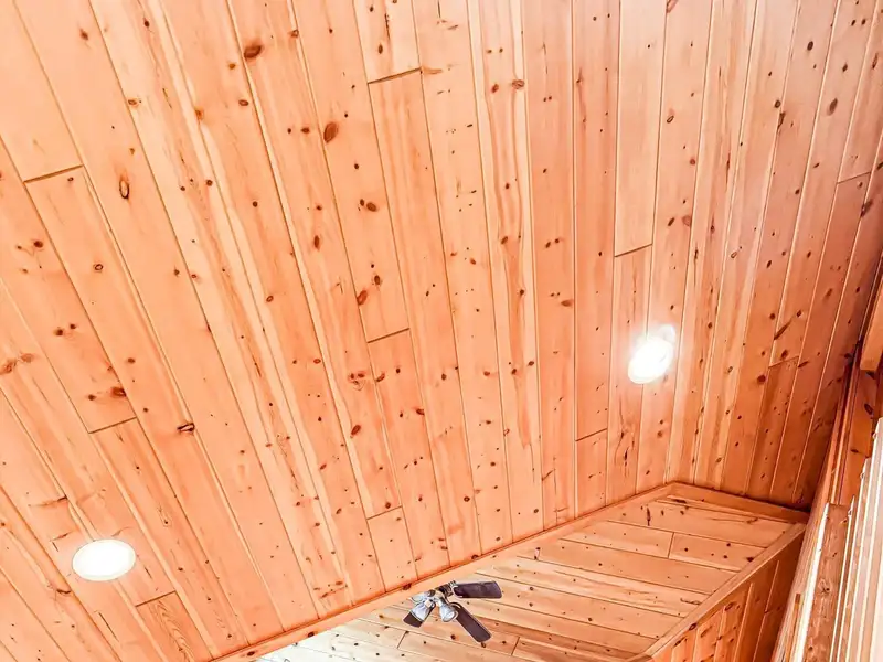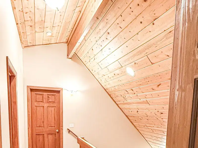 - Soaring cedar cathedral ceilings