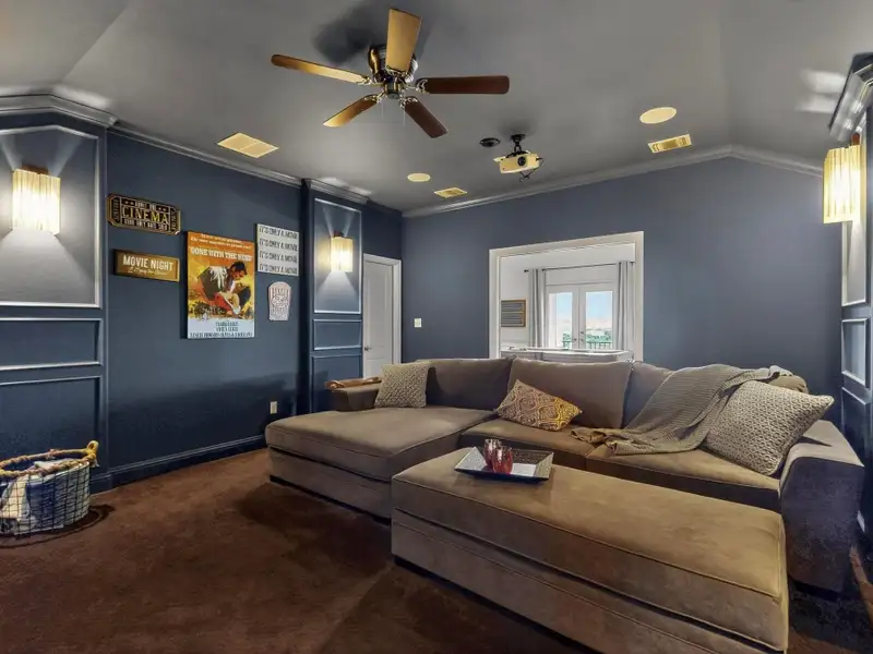 - Movie room with projector screen and surround sound