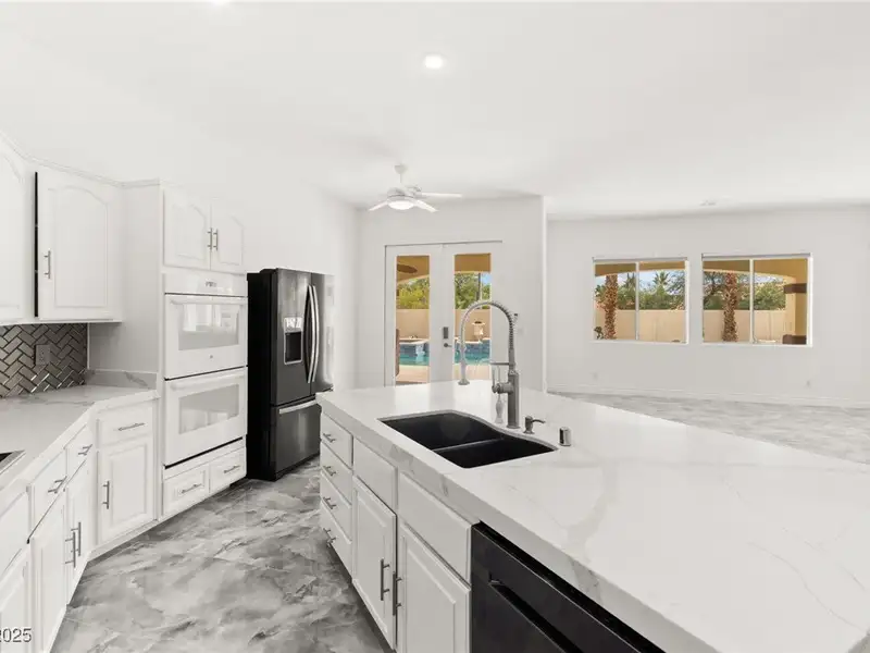 - Open kitchen with quartz countertops