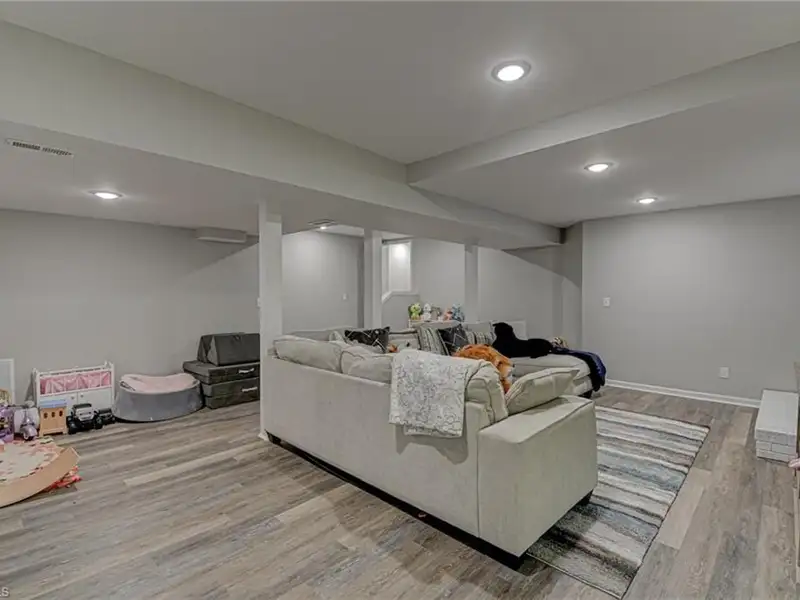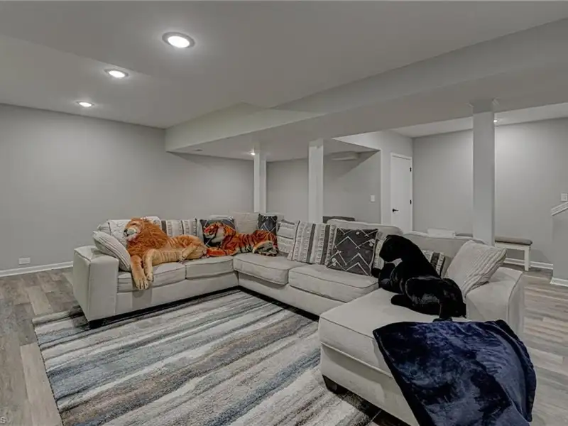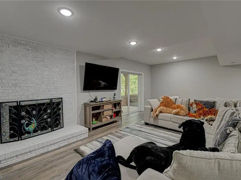 - Expanded basement with fireplace and patio