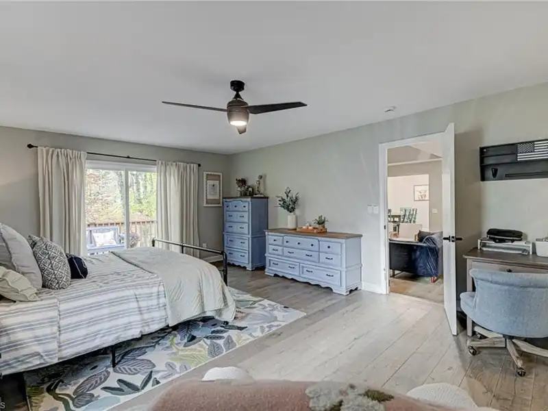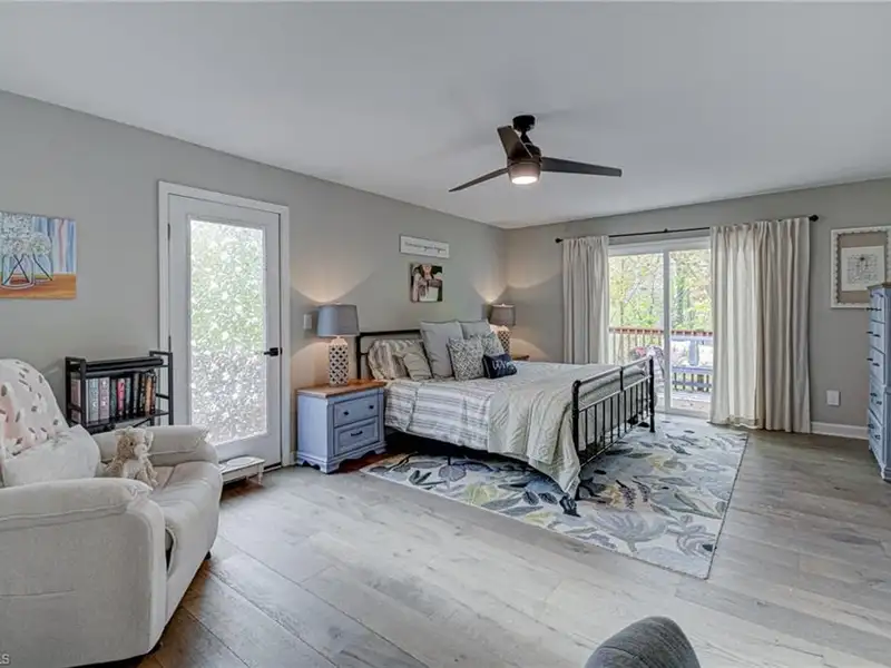 - Main-level primary suite with balcony