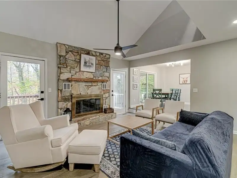 - Stone fireplace in living room