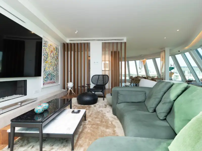 - Spacious 65 m² glass-paneled living room