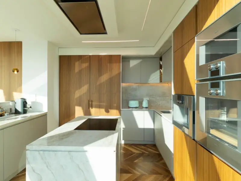 - Kitchen with Gaggenau appliances and marble countertop