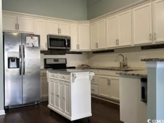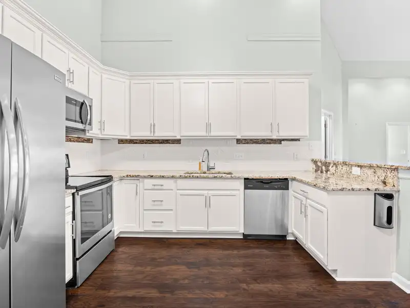 - Stainless steel kitchen appliances with granite counters