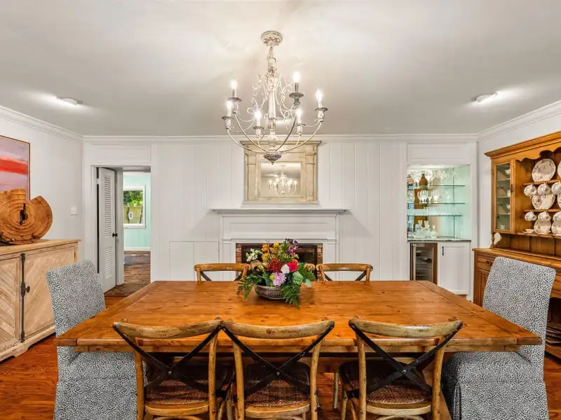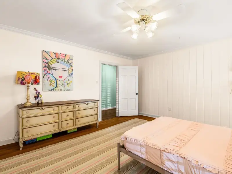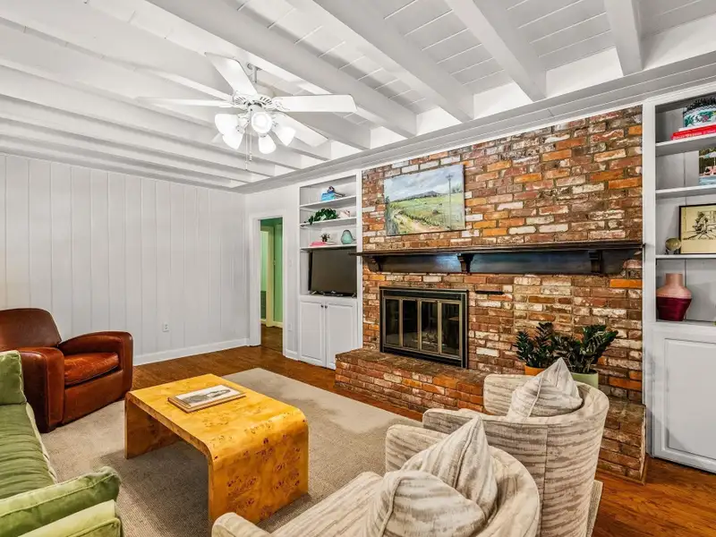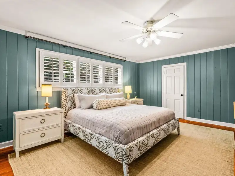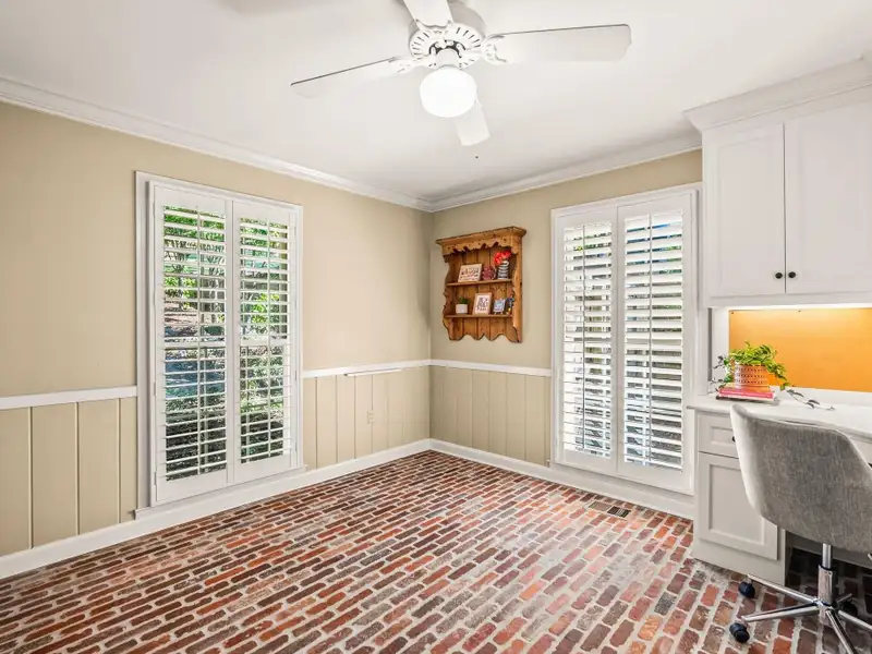 - Plantation shutters and exposed brick floors