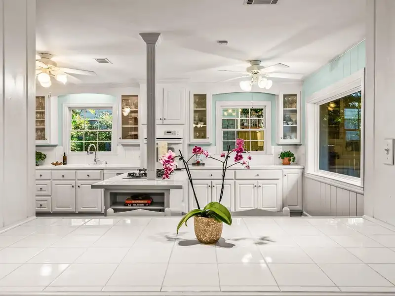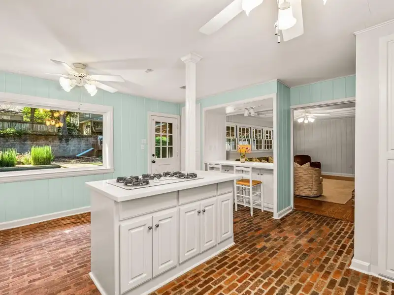 - Kitchen with island and breakfast bar