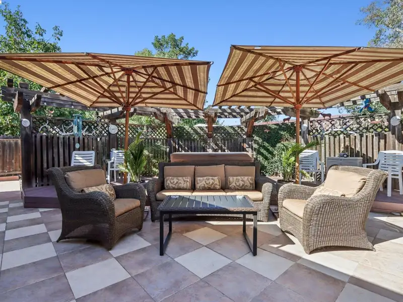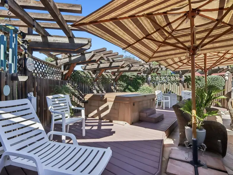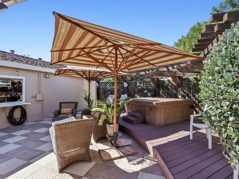 - Custom redwood gazebo with private hot tub