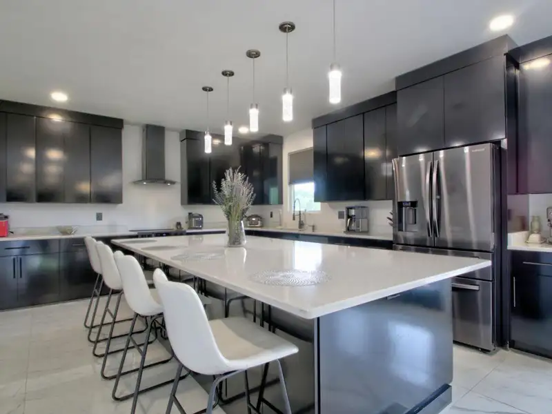 - Oversized kitchen island and breakfast area