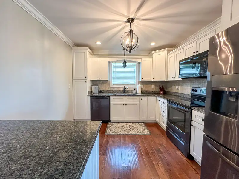 - Modern kitchen with granite countertops